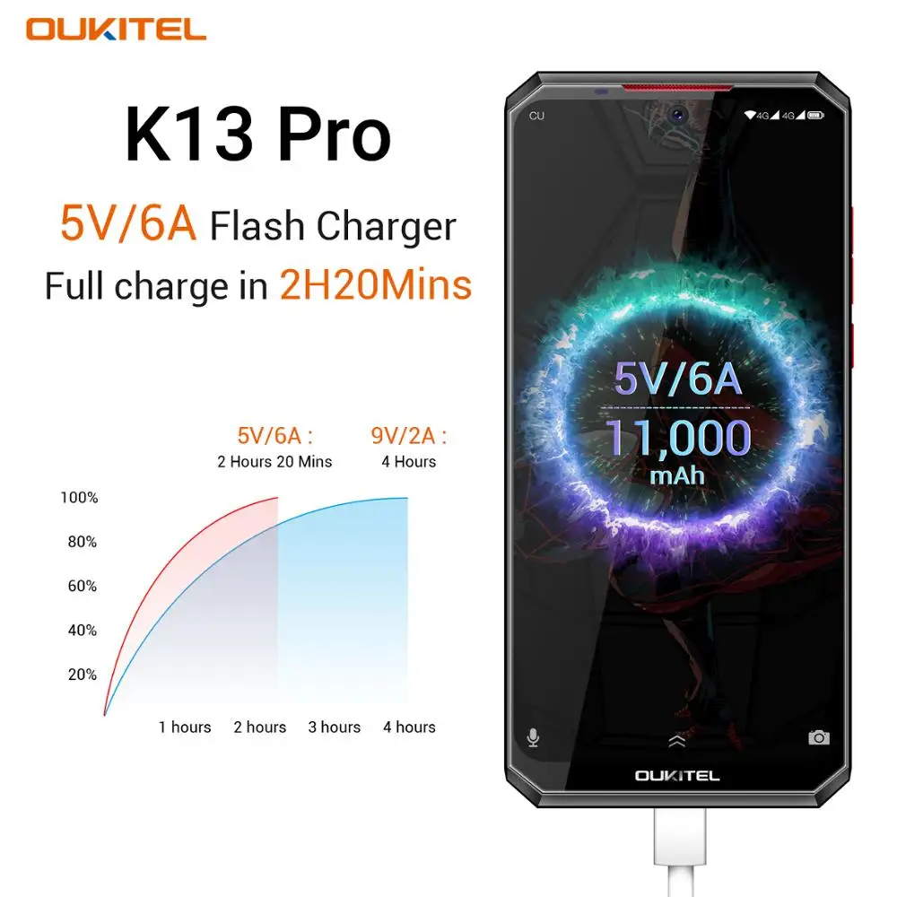 OUKITEL K13 Pro пакеты 11000 мА/ч, массивная батарея для супер выносливость. Когда-либо-долговременная мощность поддержки делает вашу рабочую и личную зону увлекательнее.
