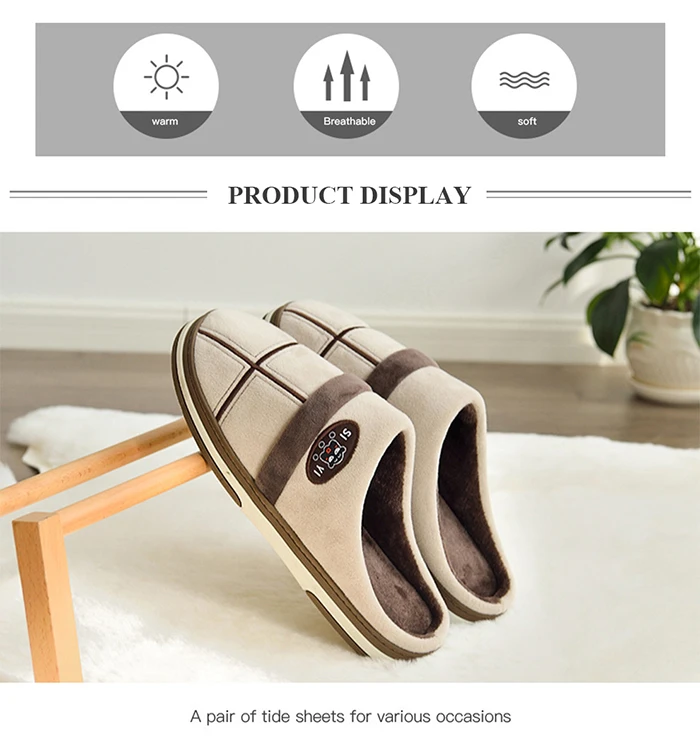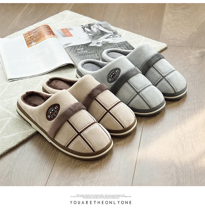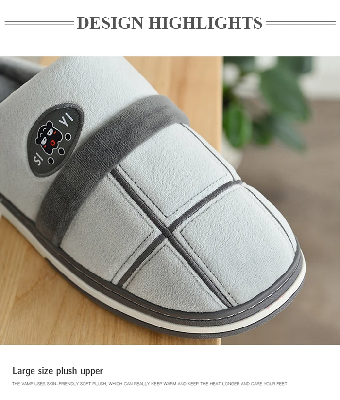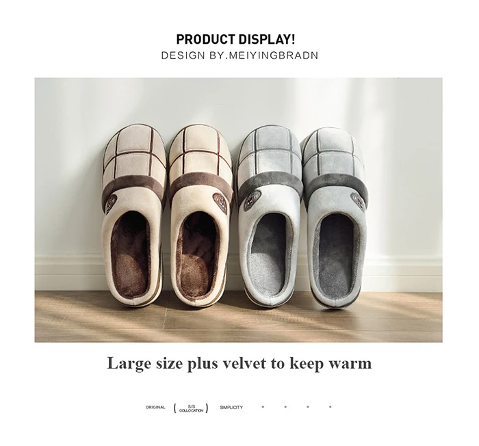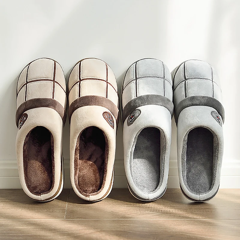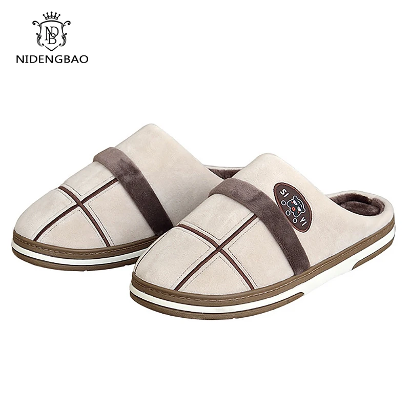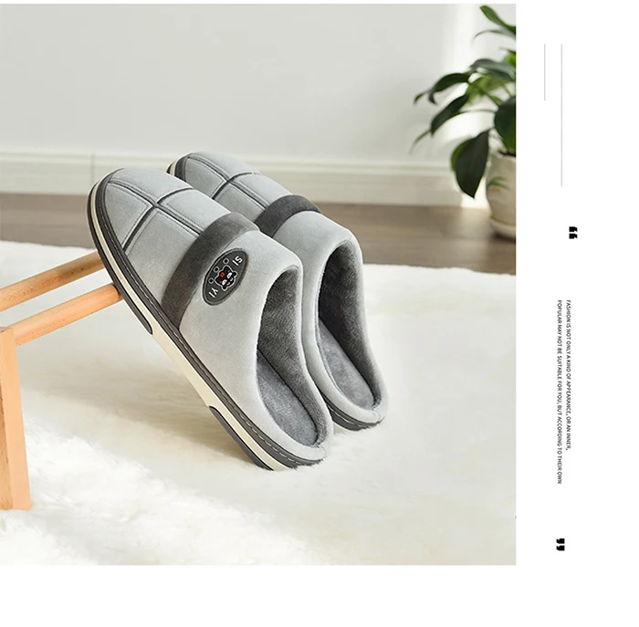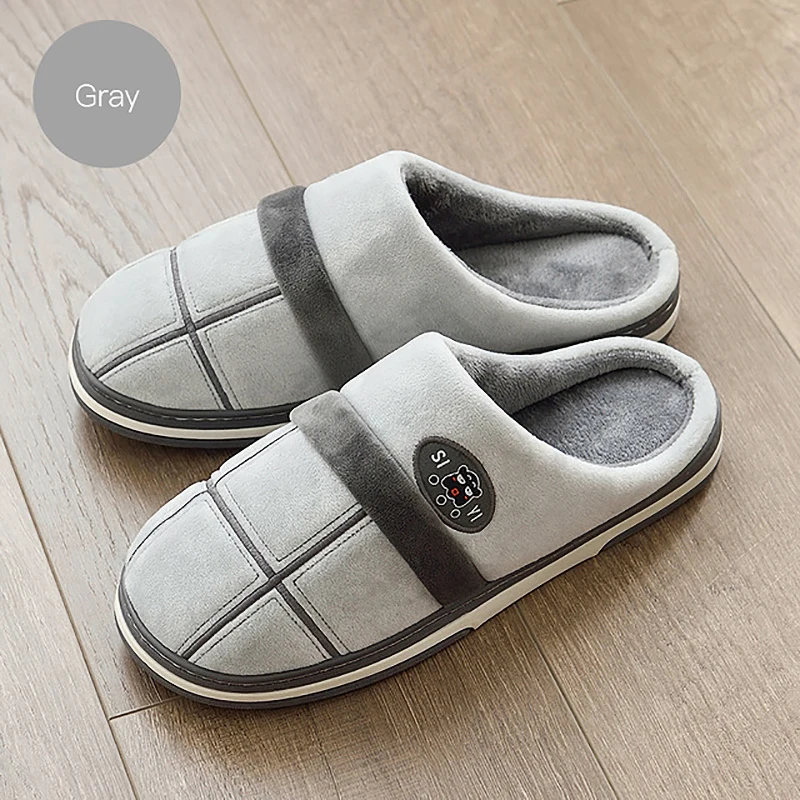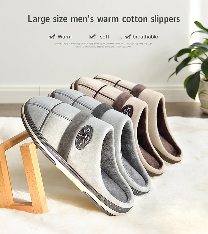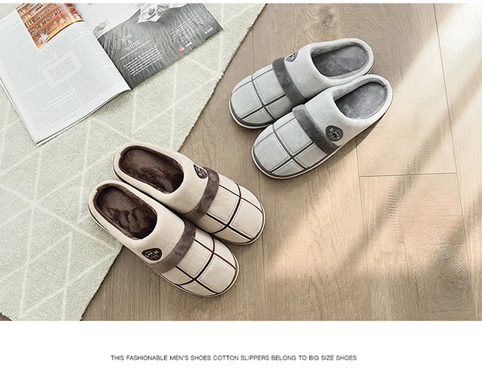 Большие размеры 40-50, мужские хлопковые тапочки зимняя домашняя обувь для мужчин, плюшевые Нескользящие теплые домашние тапочки на толстой подошве с эффектом памяти