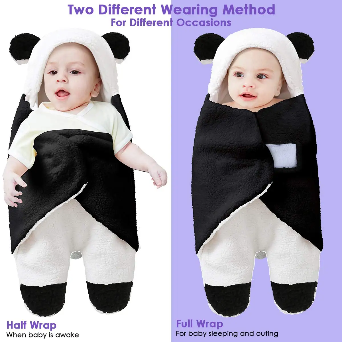 Хлопковое плюшевое одеяло с капюшоном для новорожденных, теплый мягкий спальный мешок для пеленания, одежда для коляски, спальные мешки