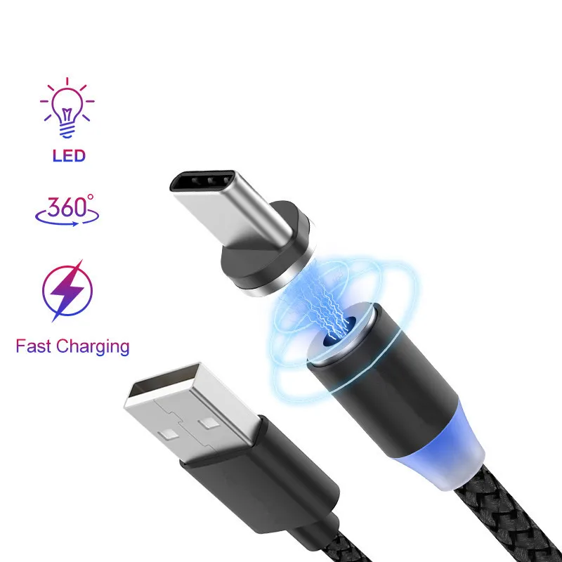 Магнитный светодиодный кабель Type-C Micro USB, Магнитный зарядный ...