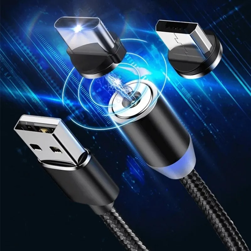 Магнитный зарядный кабель Micro USB Type-C, с поворотом на 360 град...