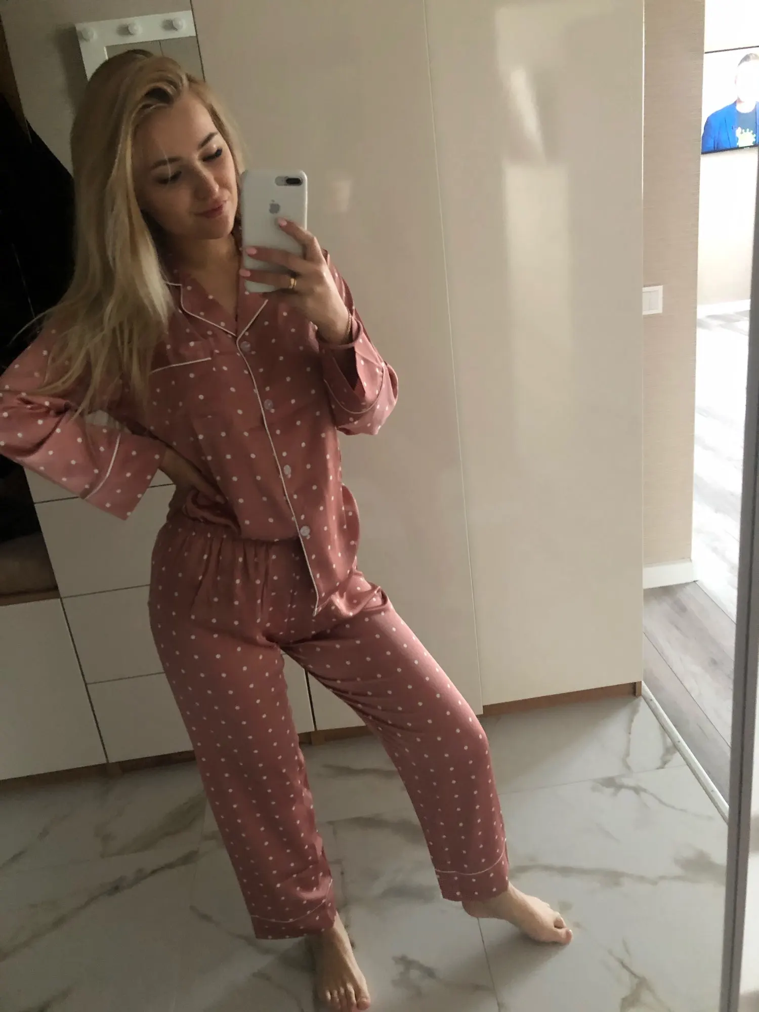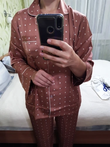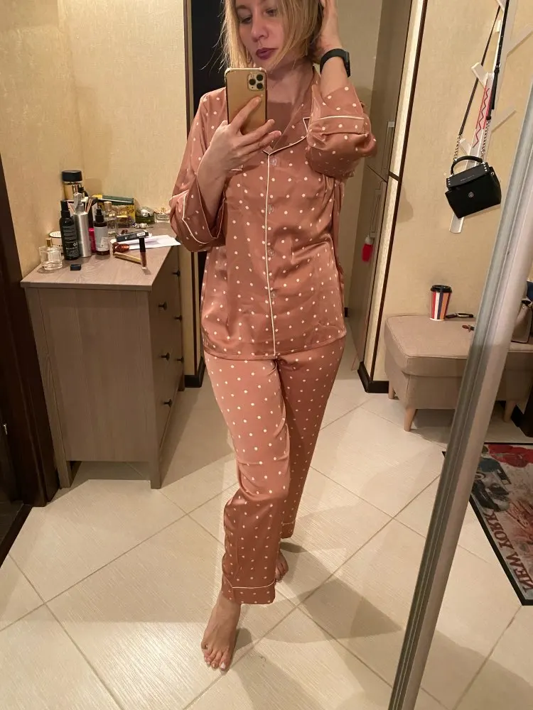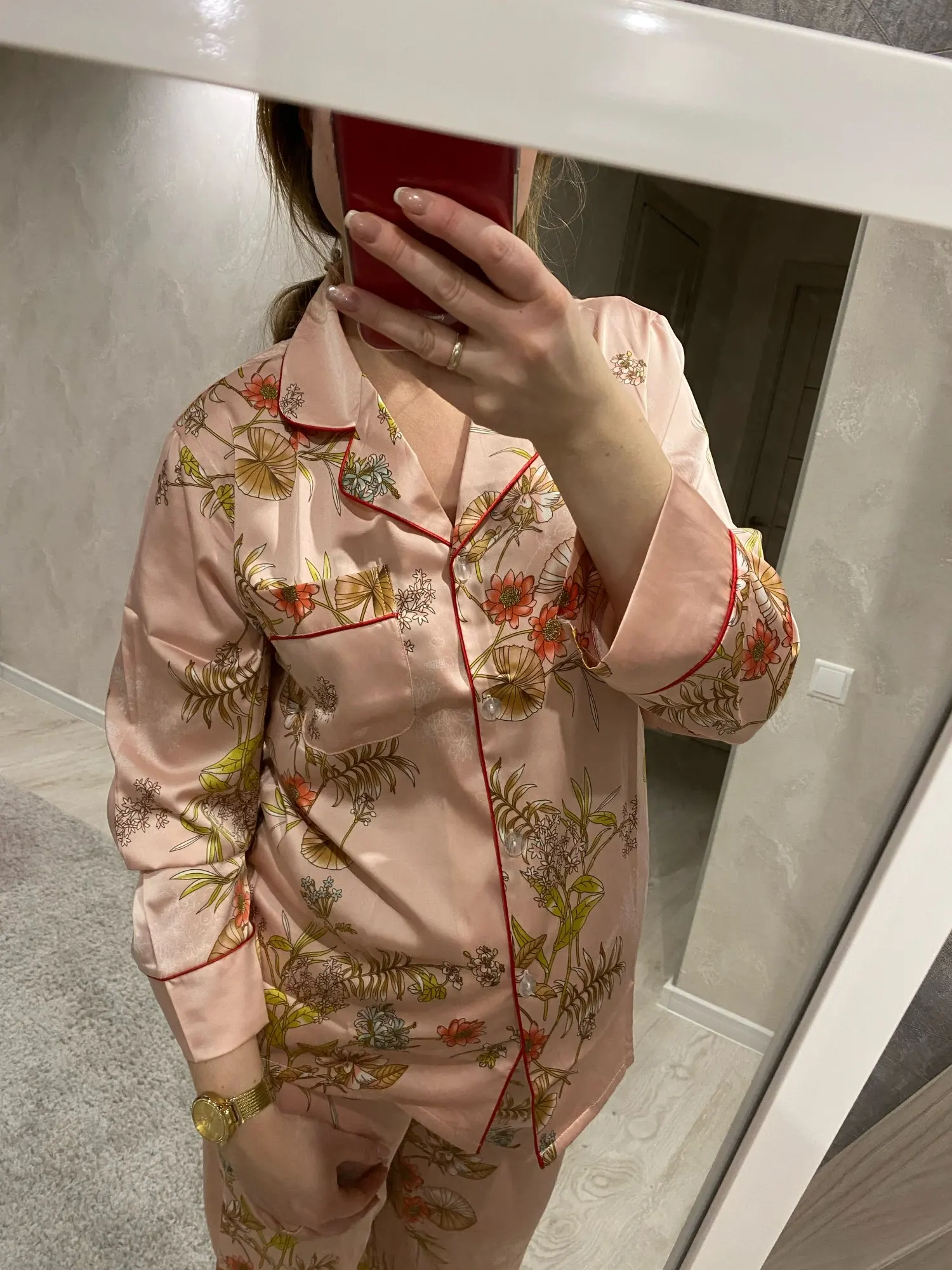 Пижама понравилась, очень приятный к телу, легкий, искусственный шёлк. Маломерка конечно, но начитавшись отзывов на свой рост 168см и вес 58кг, взяла XL, по моим ощущениям для оверсайс можно было и XXL, но мужу понравилось как на мне сидит. Рукава и длина штанов тютелька в тютельку