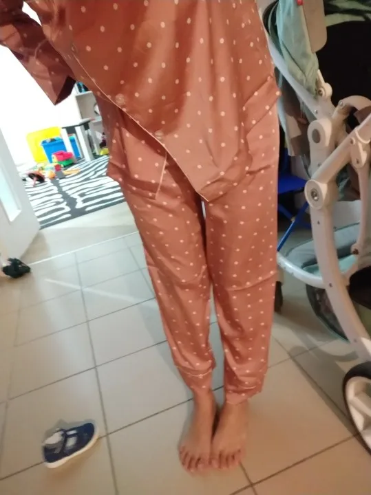 Очень довольна покупкой, прекрасная пижама или комплект для дома. Качество супер, даже нитки почти не торчат. На мой обычный верх С а низ М и рост 170 подошел Л размер. Носить буду скорее всего в тёплый сезон, хотя даже с моим положением пижама подходит по размеру. Доставка очень быстрая. Рекомендую!