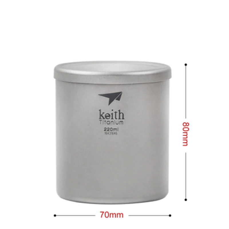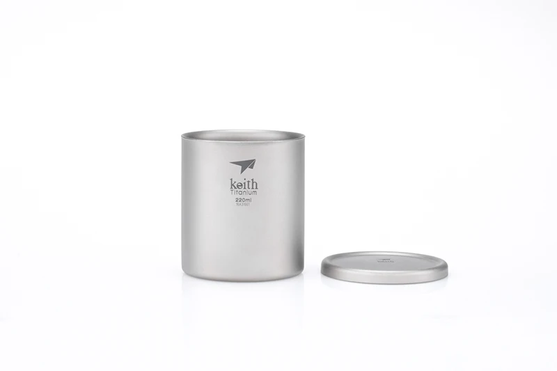 Стакан с двойными стенками Кейт 220 мл, титановая кружка с крышкой, стакан для воды, без накипи, бактериостатическая питейная посуда кружки, для кемпинга, походов, Ti3301