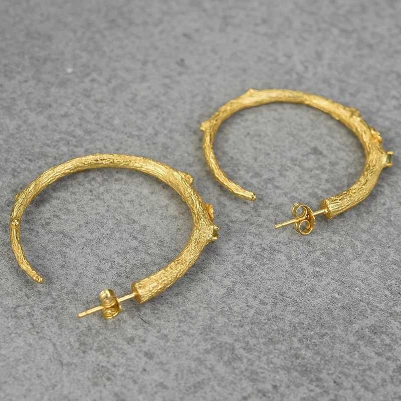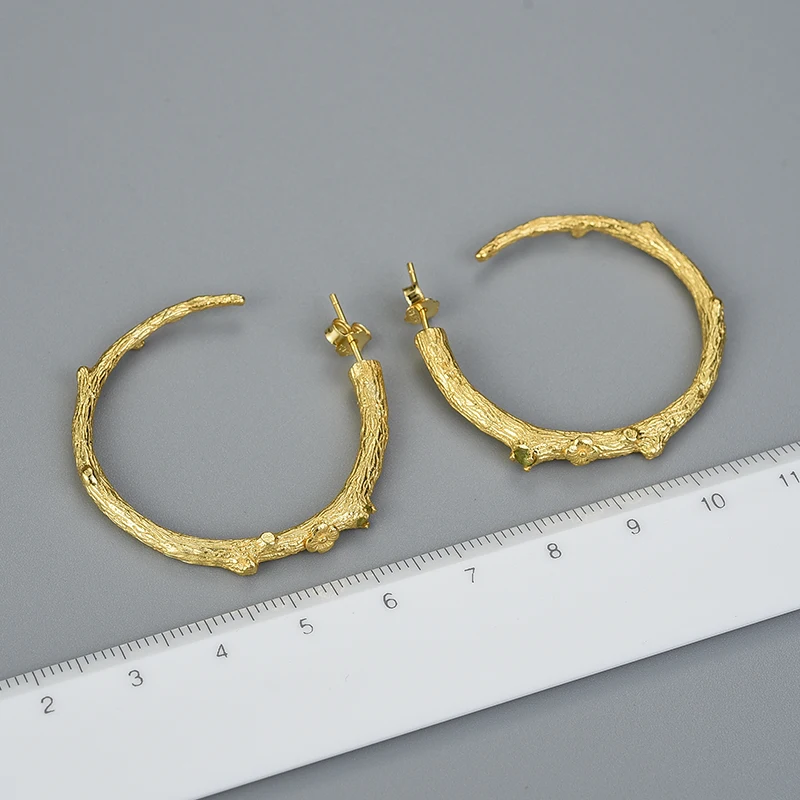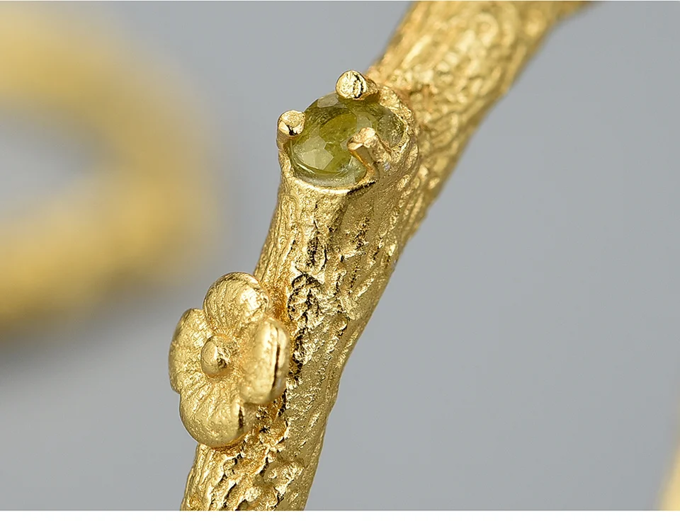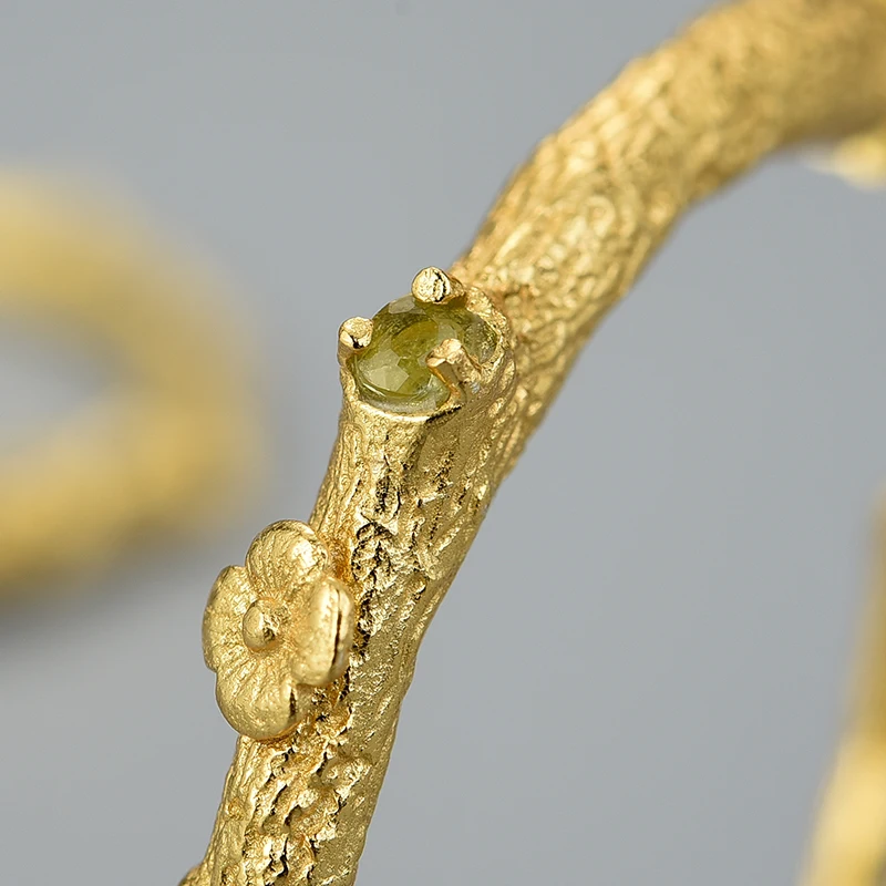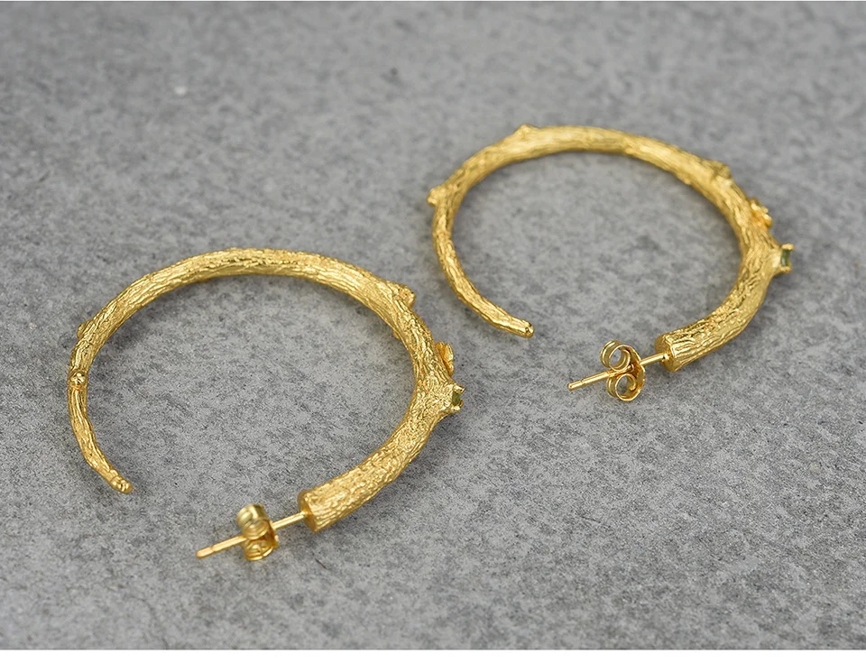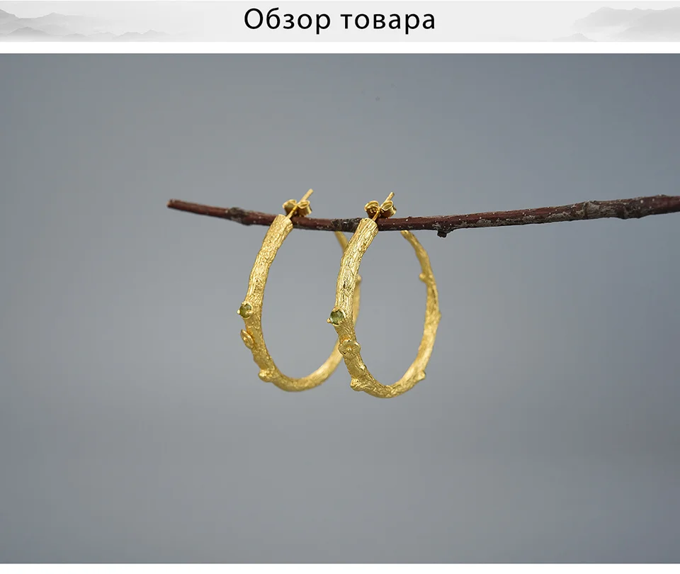 Женские серьги-кольца из серебра 925 пробы, с натуральным Перидотом