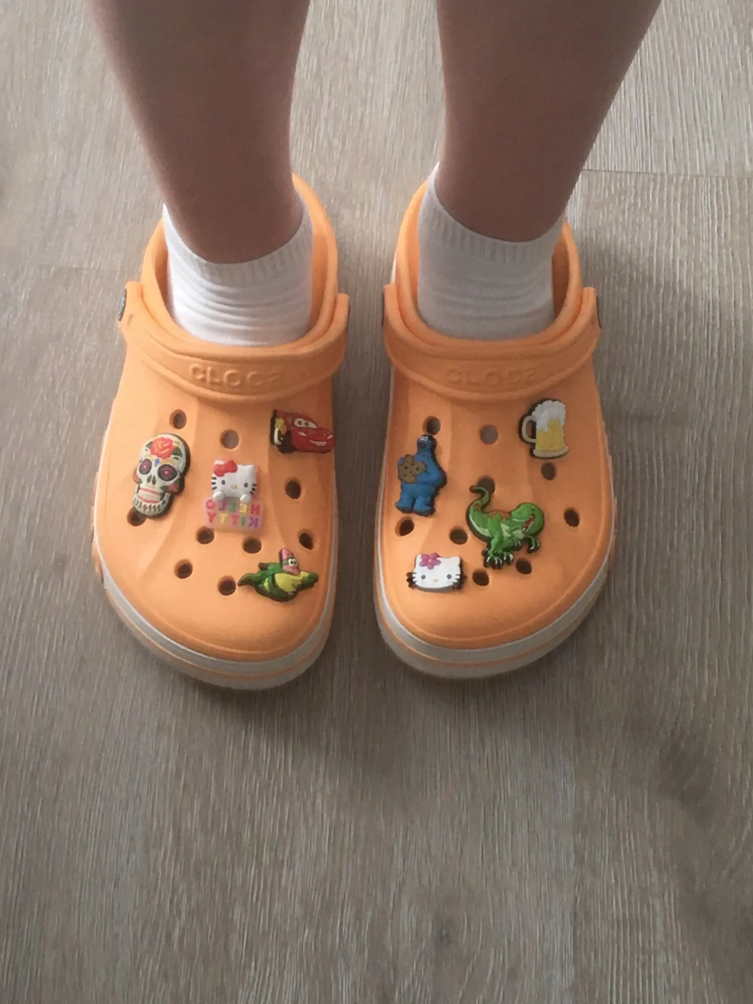 КЧАУ! очень хороший и качественный товар, от оригинального не отличишь, я довольна, шел не очень долго, я довольно, все отлично, украшает теперь мои кроксы) с продавцом не общалась