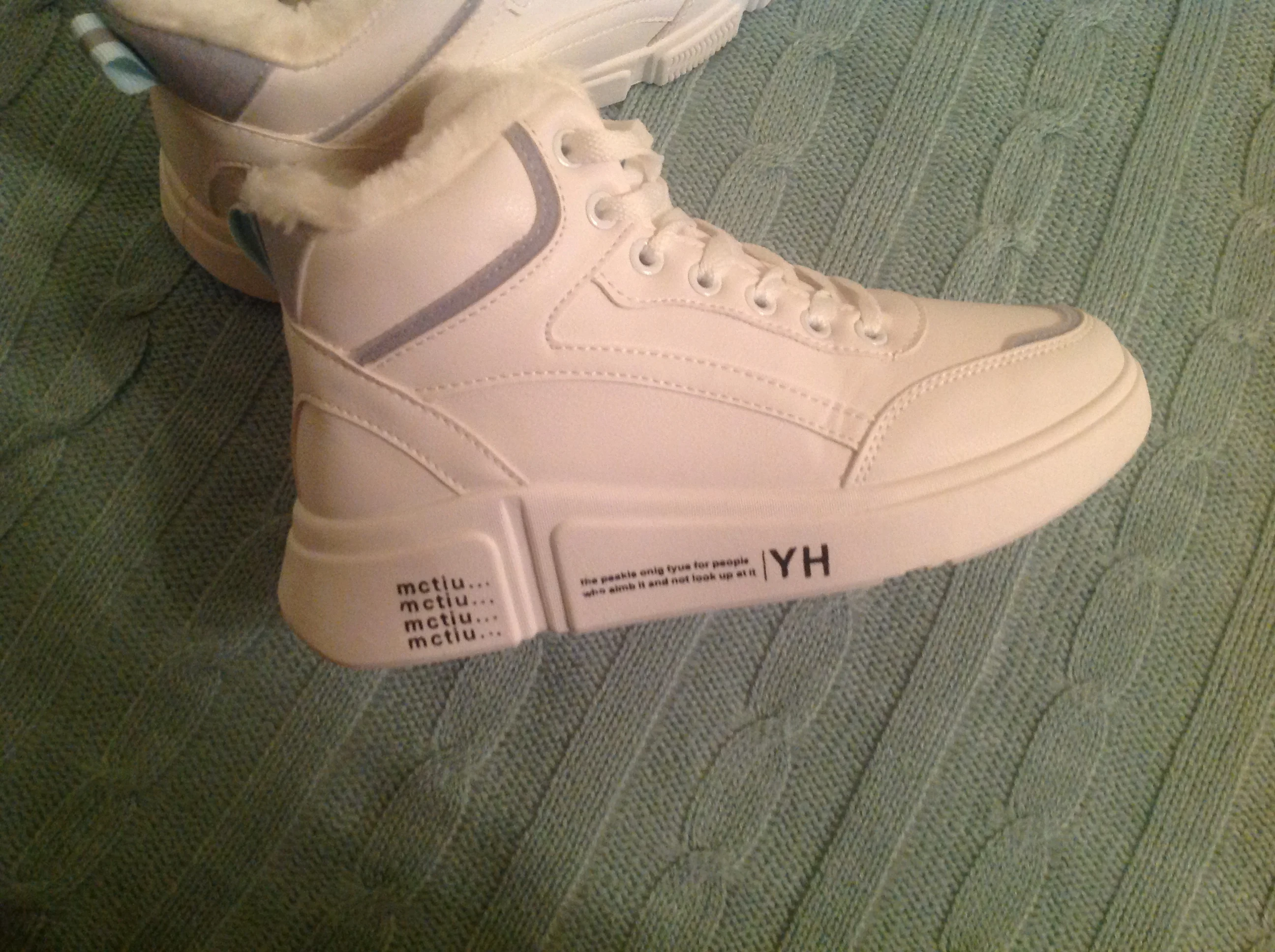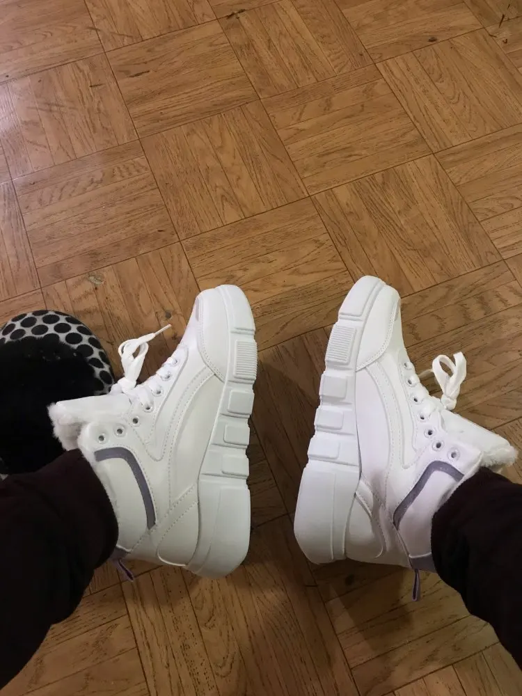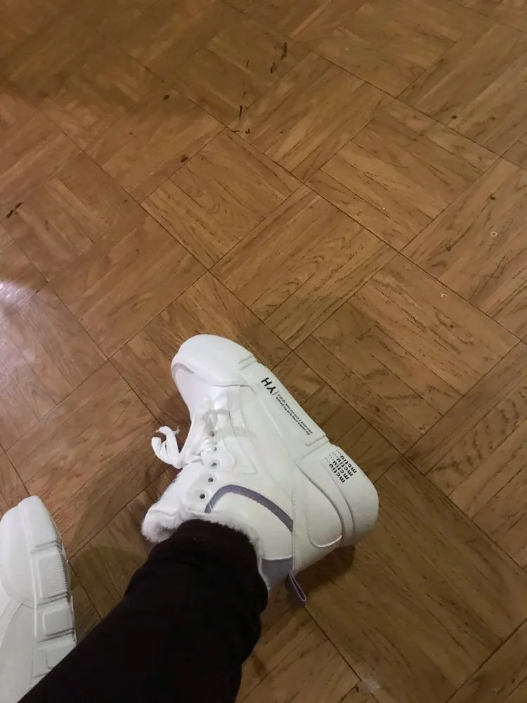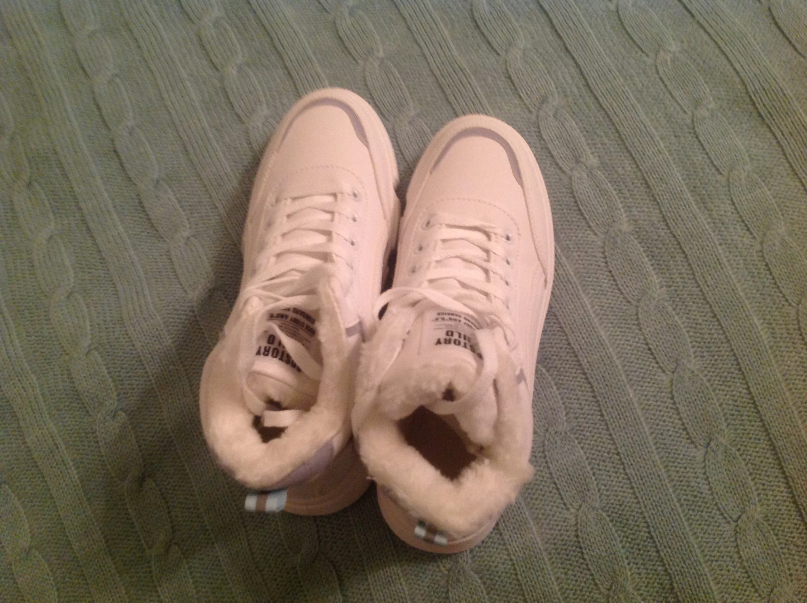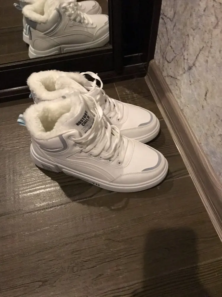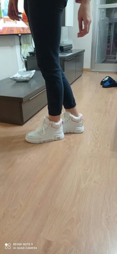 Внешне кроссовки выглядят чудненько, мех искусственный, с виду теплый. Зимой будет видно. По размеру подошли хорошо, но если носить с толстым носком надо брать на пол размера больше. В подарок продавец положил резинку для волос