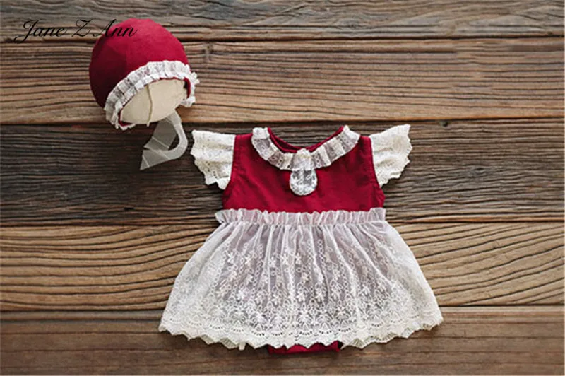 Рождественское кружевное платье с открытыми плечами Jane Z Ann, винно-красное платье, реквизит для детской студийной фотосъемки новорожденных, 2 вида