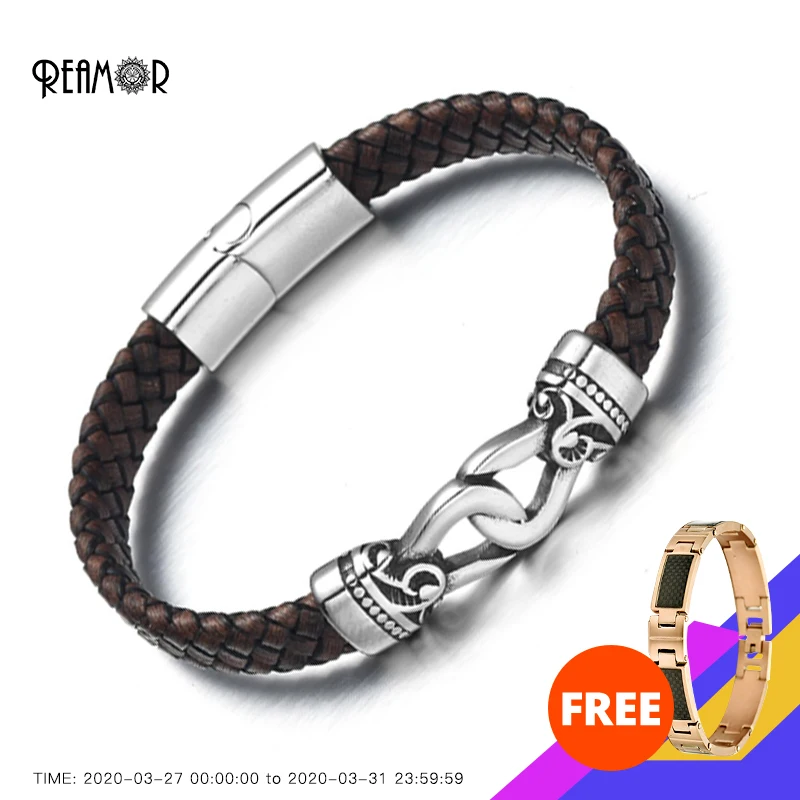 Браслет REAMOR мужской из натуральной кожи, роскошный коричневый бр...