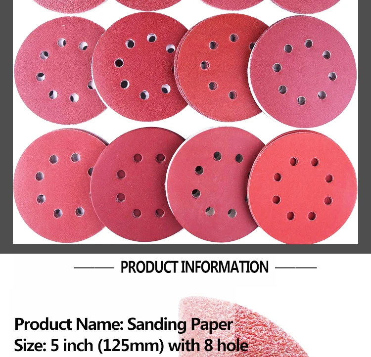 Набор шлифовальных дисков, 10 шт., 125 мм, 5 дюймов, с 8 отверстиями