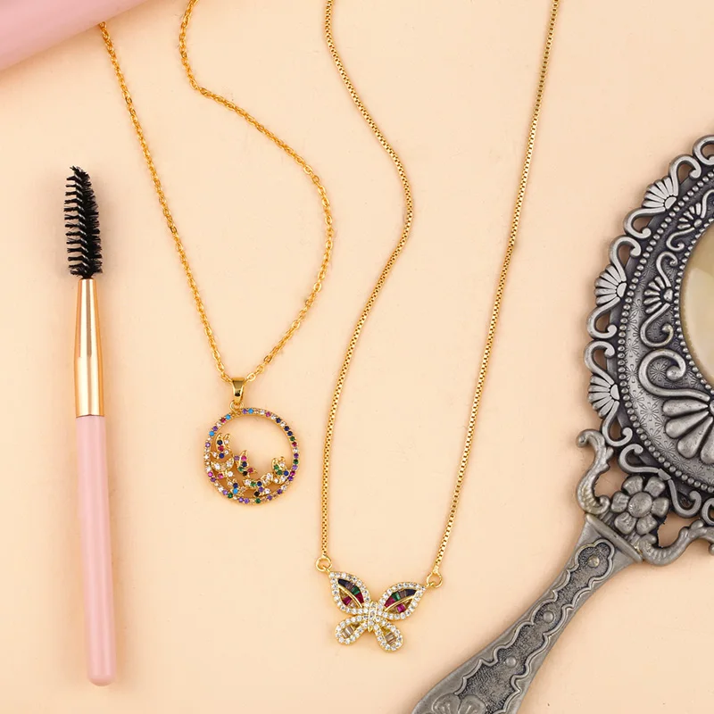FLOLA CZ радужные ожерелья для женщин золотые ожерелья от сглаза с ...