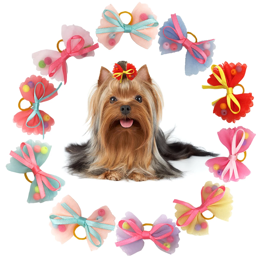Резинка для шерсти домашних питомцев, модный Симпатичные Бусины бант, украшение для шерсти собак и кошек, аксессуары для вечерние, 10 шт.
