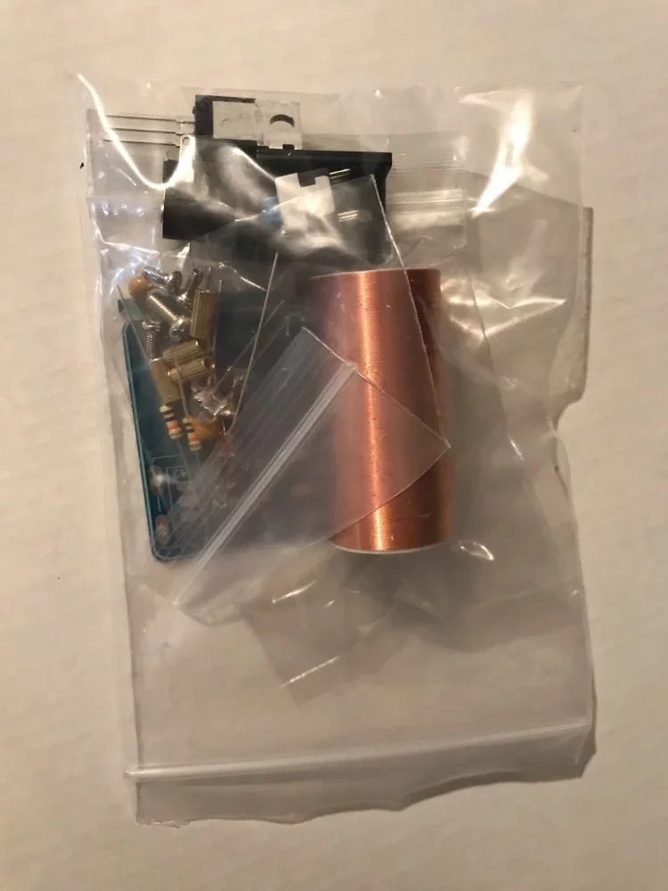 Доставка около 2-х месяцев, трек не отслеживался, пришло уведомление с почты. Упаковано в пакетик с пупыркой. В комплекте остаются запасные элементы. После сборки не светился внутри диод, оказалось надо зачистить конец проволоки снизу у катушки, который припаивается. Газоразрядные лампы зажигает на ура, бумагу жгет тоже хорошо.