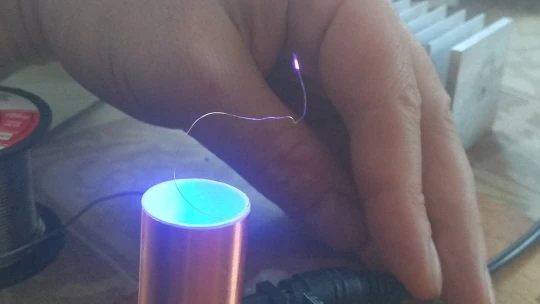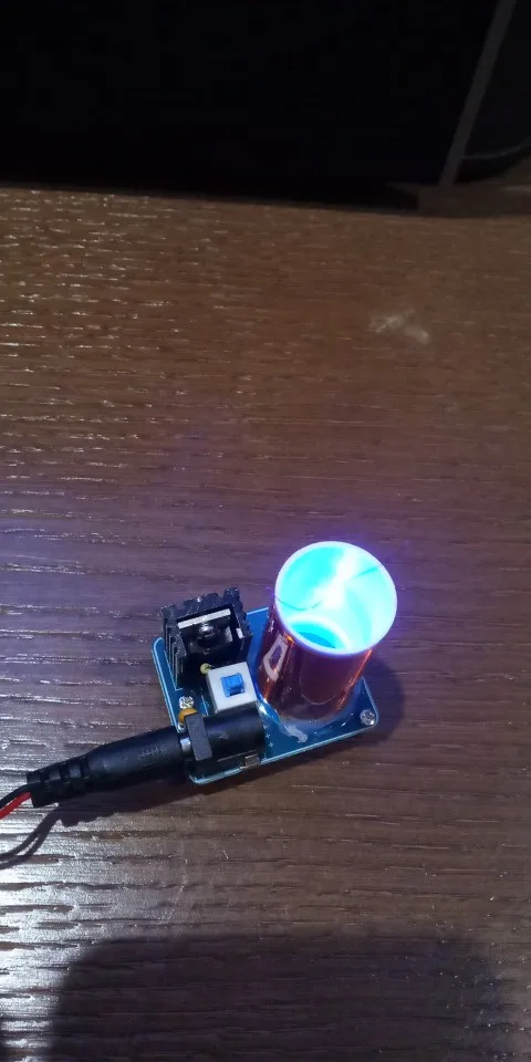 Игрушка забавная. Зачем купил? ХЗ как и многое другое с али. Очередная хрень. На 5в вторая фотка - коронарного свечения на клнчике провода не видно. Палец чуть чуть пркусывает. На 12в виден милиметррв 3-4, прожигает бумагу. Запах озона. Лампочка светится. На 12в греется транзистор, так что рука не держит. Врядли он проработает долго в таком режиме. Инструкции нет. Доставка стандартная. Упаковка обычная, но дошло всё в целости и сохранности.
