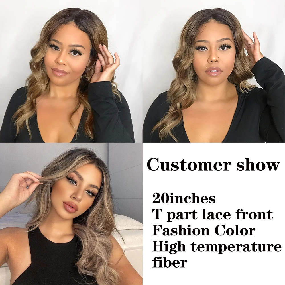 Парики женские из синтетических волос, коричневые, с эффектом деграде, с натуральными волнами, длиной до плеч, термостойкие, L-образные, X-TRESS