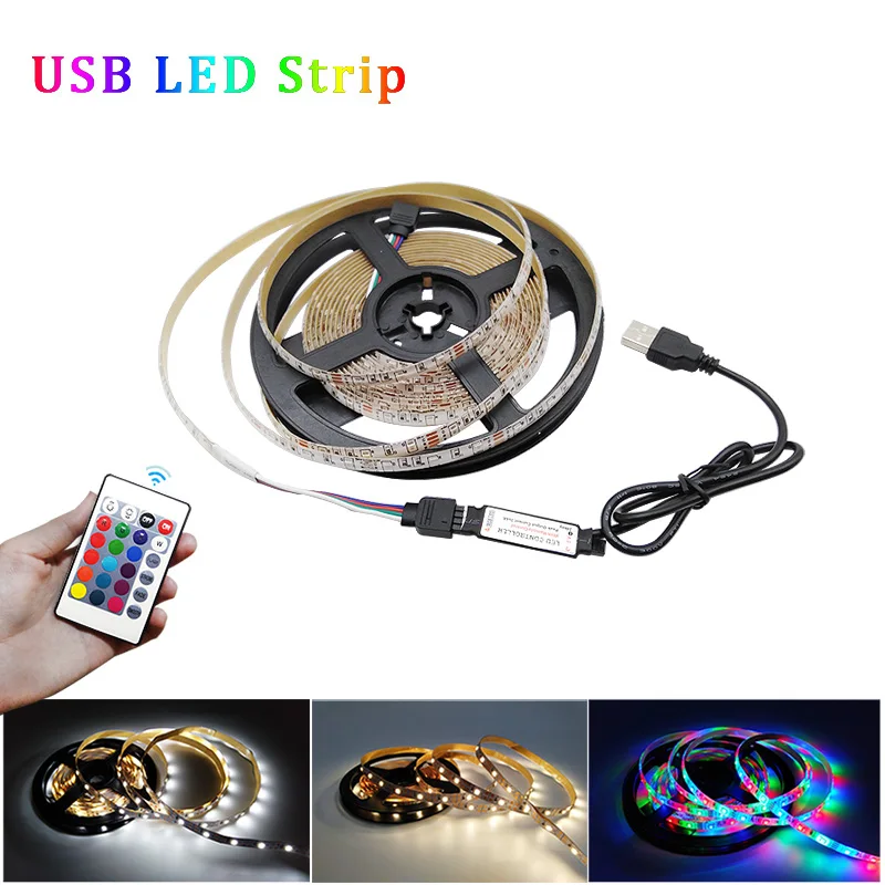 Светодиодная лента 5 в USB 2835 SMD гибкая лента RGB Светодиодная лента светильник Светодиодная лента ТВ ПОДСВЕТКА светильник с дистанционным управлением 24 клавиши