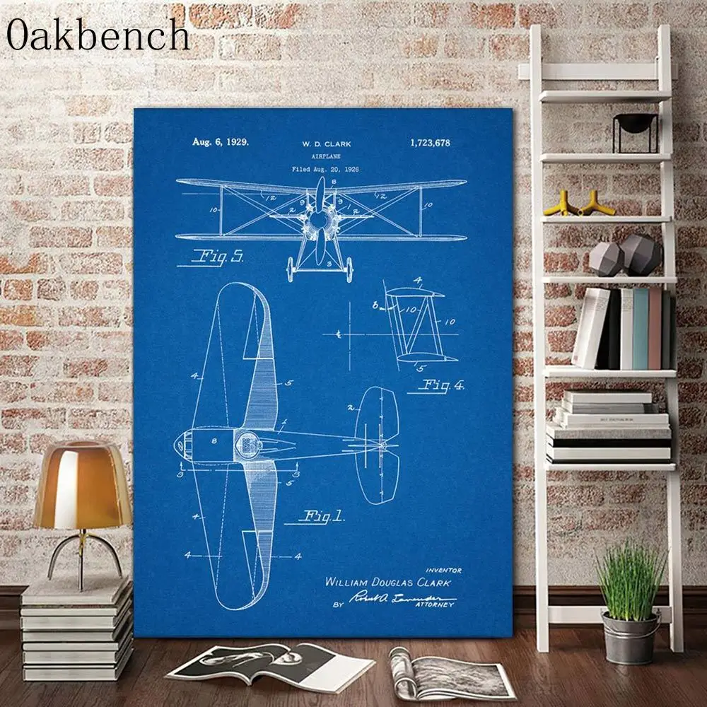 Космический Шаттл, парусиновые постеры и принты, бипланер, патентный принт, космическая техника, Синий принт, винтажные постеры, авиационный Настенный декор