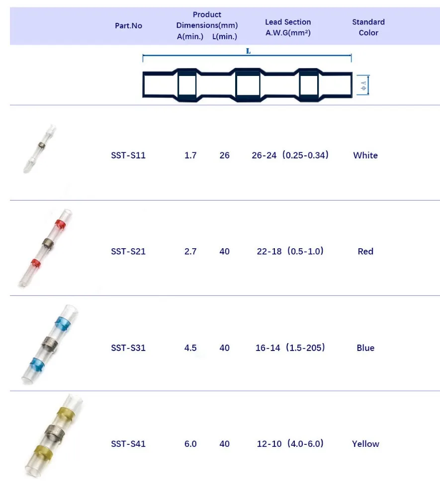 Водонепроницаемый термоусадочный припой втулка провода уплотнения соединители 4 размера электрический провод кабель сварка стыковой клеммы 50 шт Описание:Количество:50Шт.Материал сердечник из луженой Медь