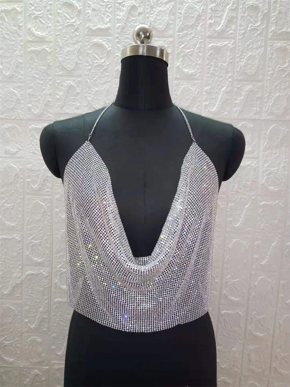 Пикантные туфли на металлическом Стразы Летний Топ для женщин со стразами, обувь для ночного клуба вечерние y2k женские топы на бретельках, с бисером, открытая спина, без бретелек, с блестками топы с бретельками
