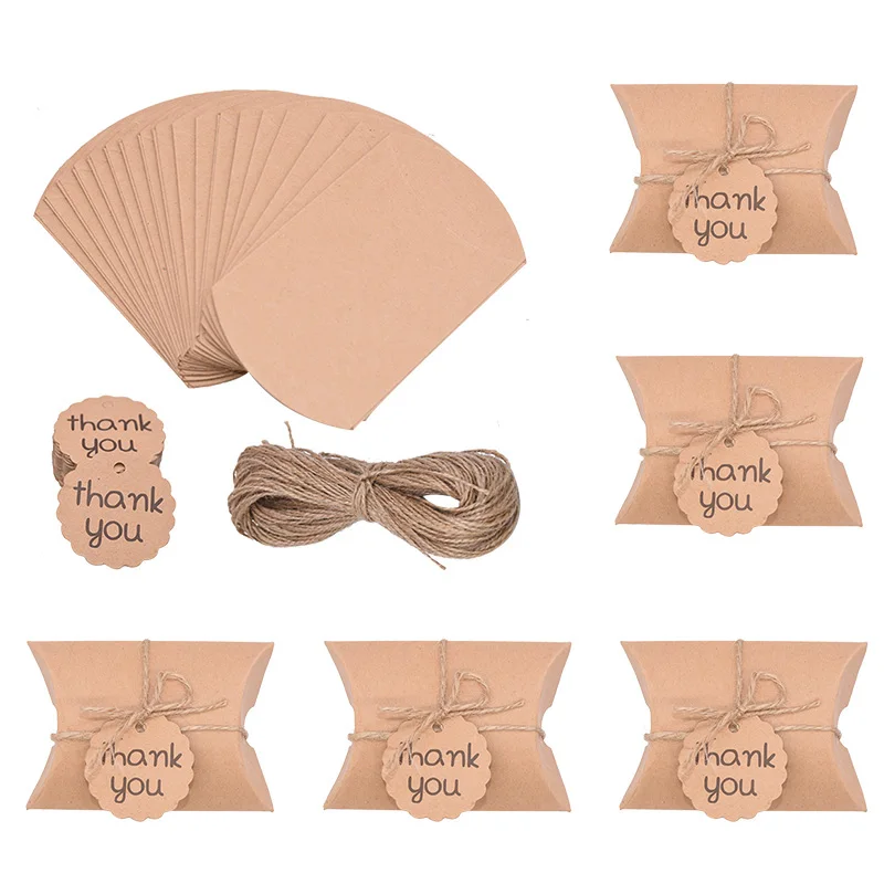 Бумажная коробка для подушек, 102050 шт., крафт-бумага квадратная коробка для конфет, с ярлыком Thank You, декор для дня рождения, свадьбы, вечеринки