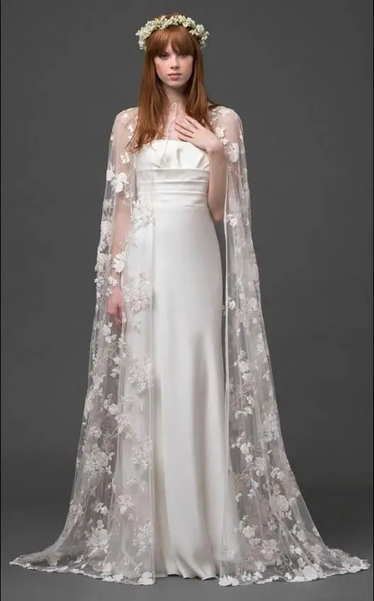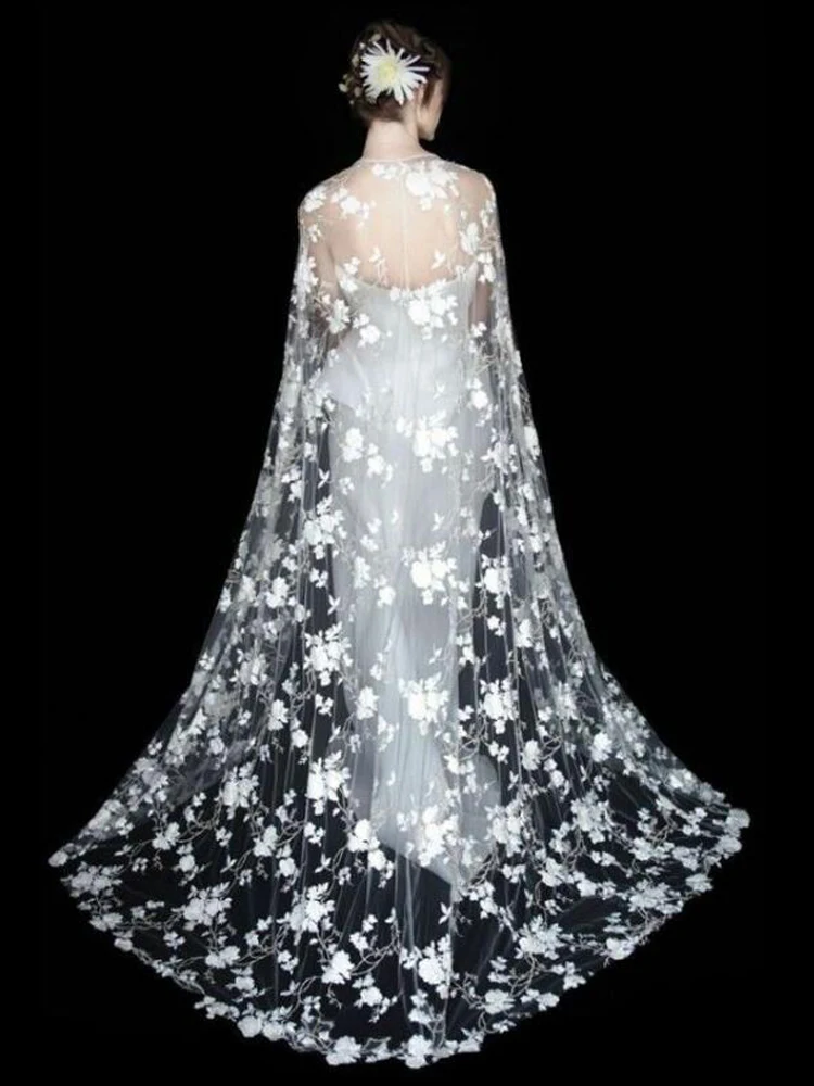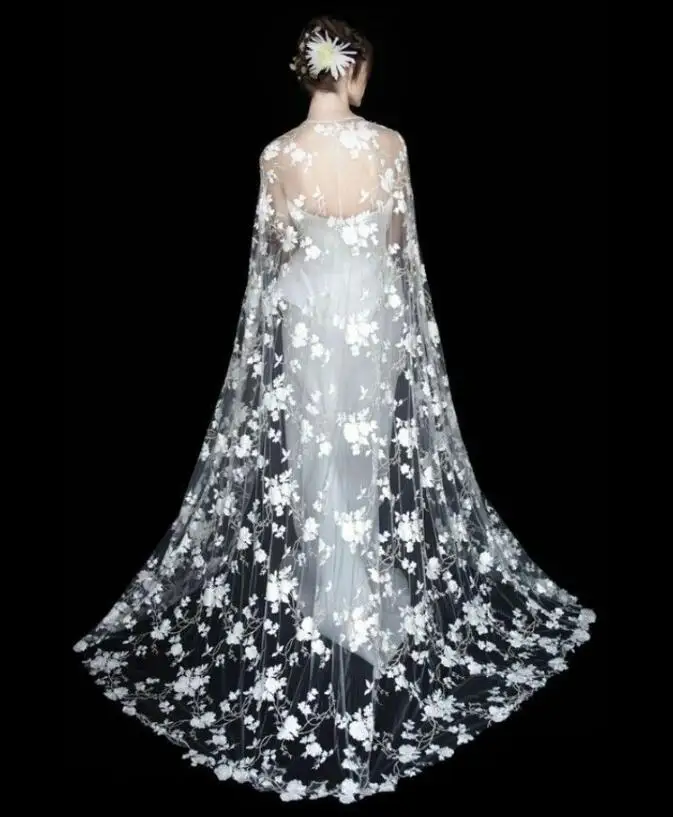 Свадебный плащ цвета слоновой кости, длинный Свадебный жакет, накидка, кружевной топ на заказ, элегантный