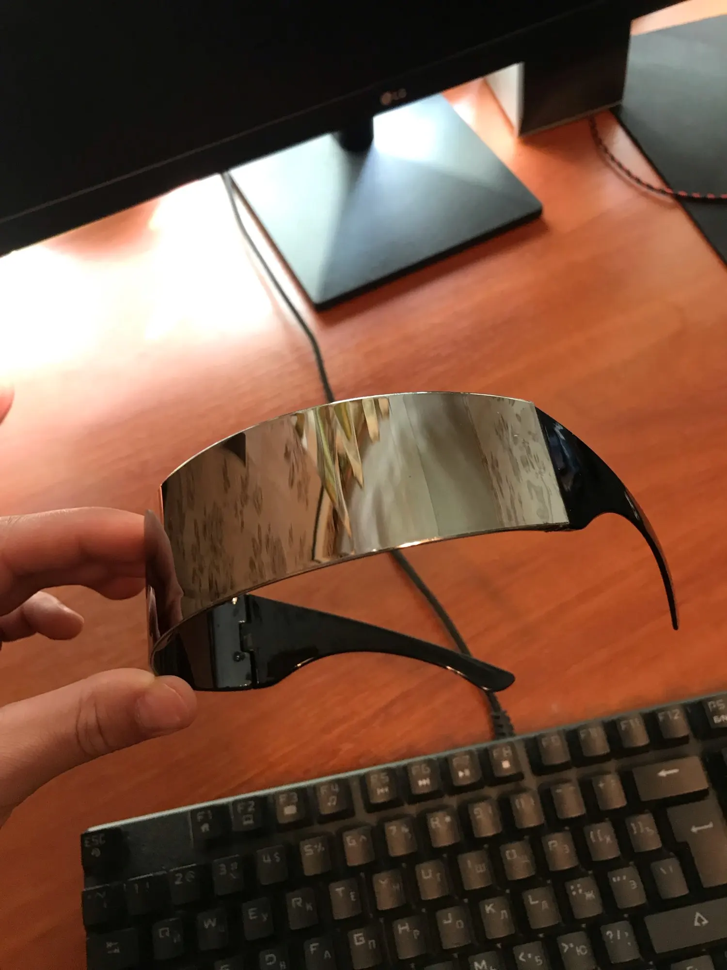 Очки низкого качества, все криво косо, и на пластике (они полностью пластиковые) след от клея, который не оттирается, в результате спора вернули 100 руб. Стоимость этих очков на 50 руб. Но смотрятся эффектно