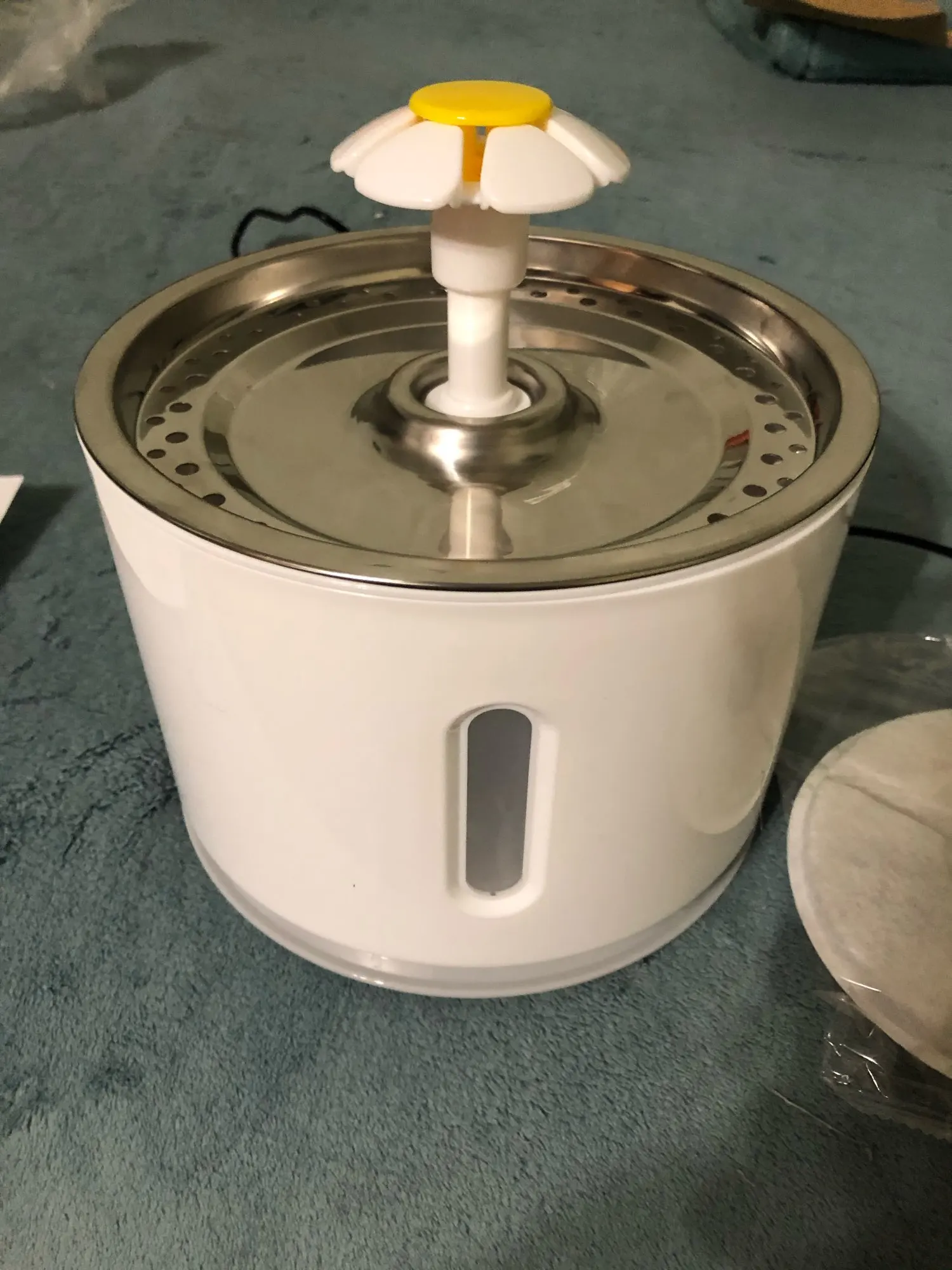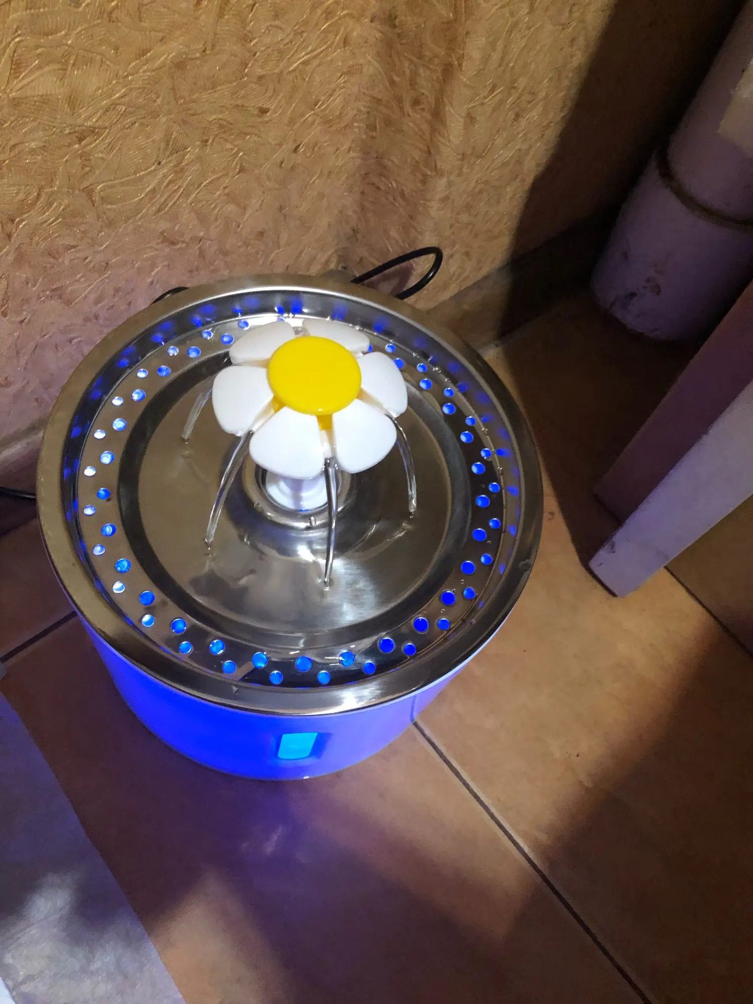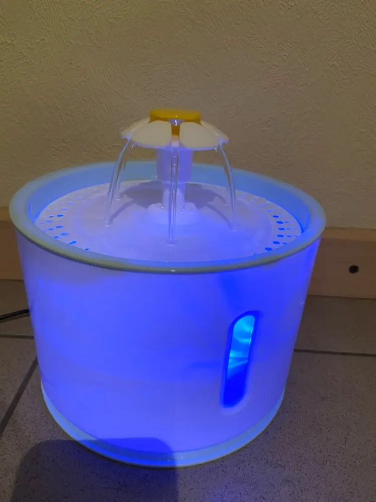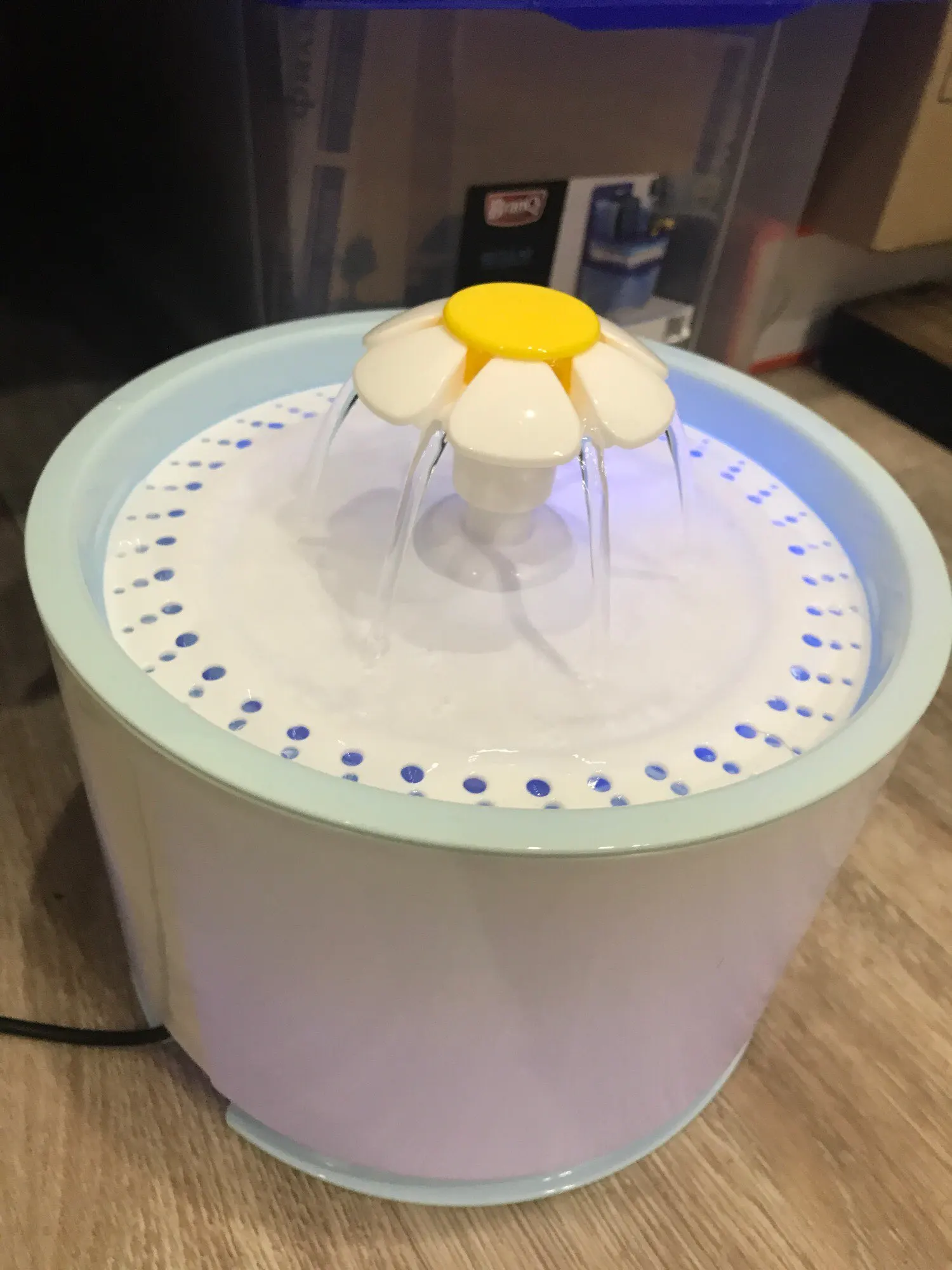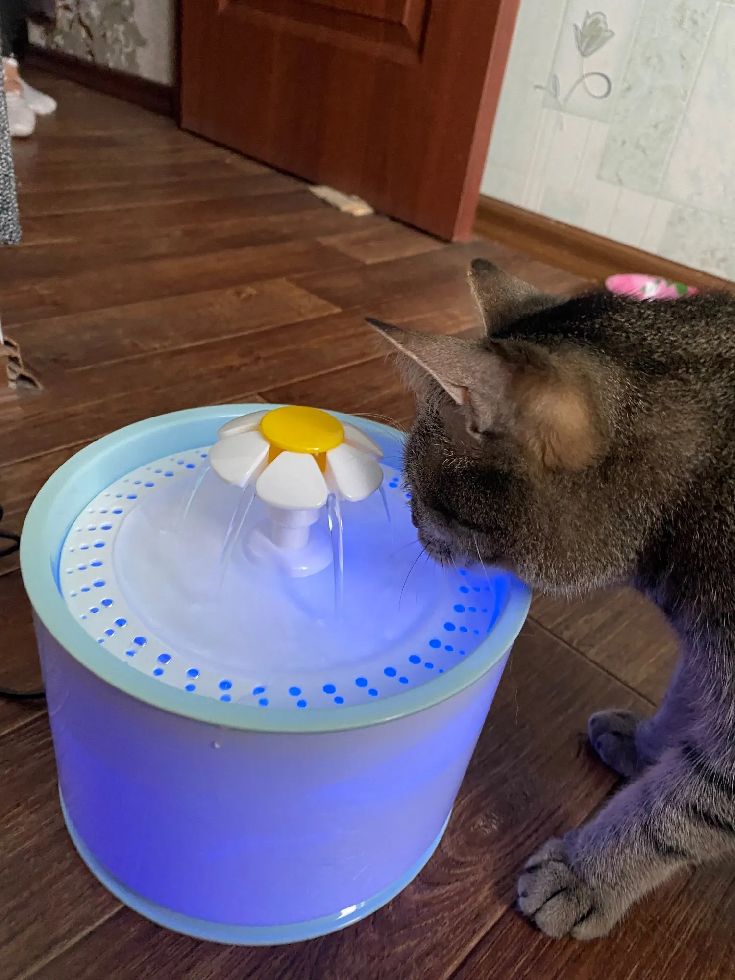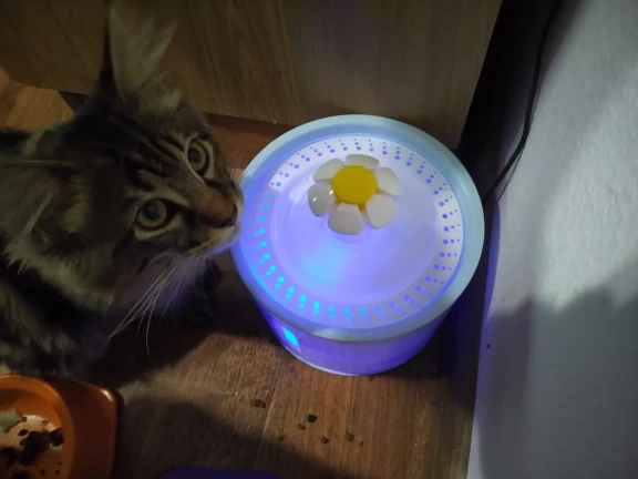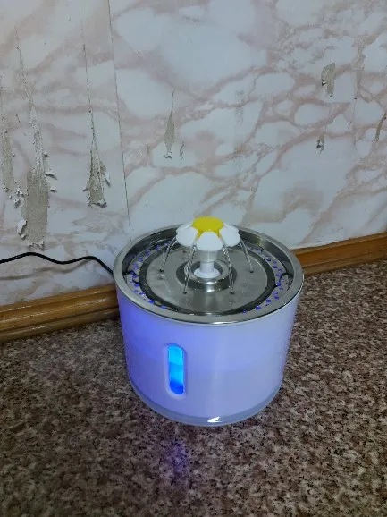 Фантастический источник. Very fast shipping. С современным и приятным дизайном, он выглядит очень красиво как днем, так и ночью. Моя кошка любит как звук воды, так и свежий и чистый, который сохраняется как фильтром, так и постоянным потоком, так и металлической крышкой. Ночью тоже нет проблем с синим освещением светодиодного света. Как единственный недостаток, вода начинается немного сверху, если источник выключен, но это меньшая проблема. Кстати, кто-нибудь знает, где получаются фильтры, и сколько их нужно изменить?
