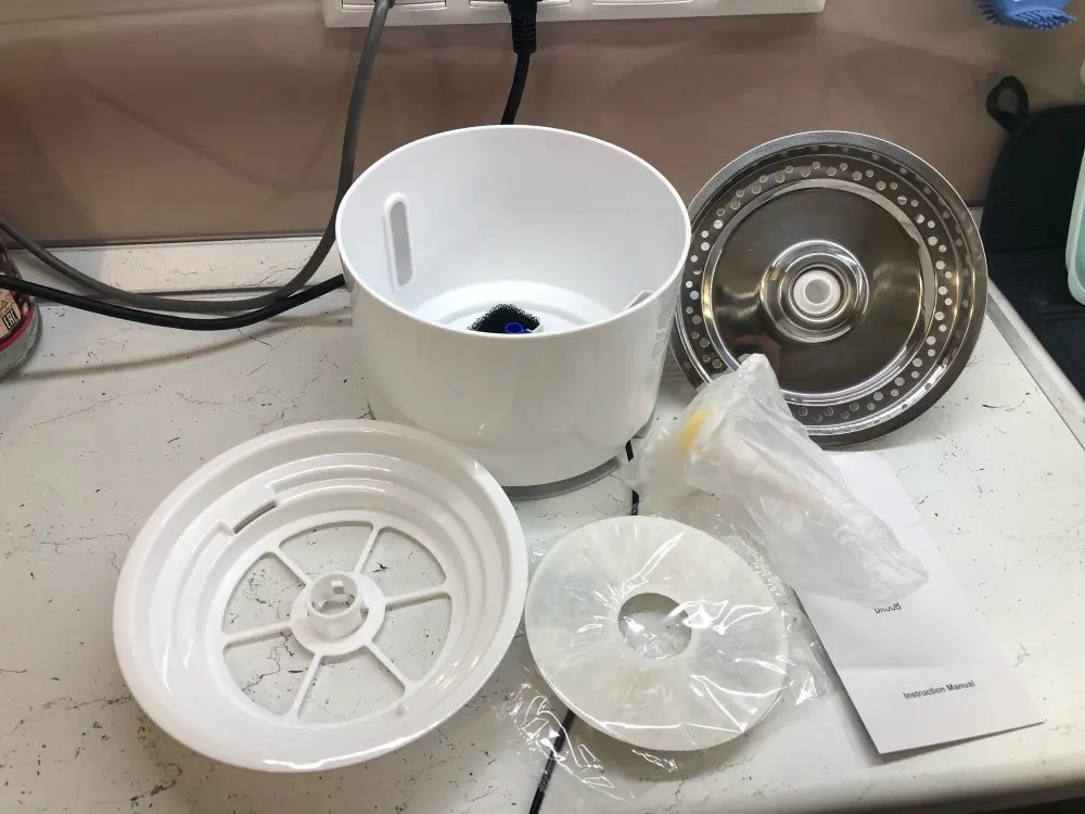 Поилка норм, собирается без инструкции. Не шумит вообще а то некоторое пишут давит на уши. Чуток большевата но не кретично. Кабель идёт 1.5 метровый usb уже подключённый к насосу. Кому надо длиннее надо покупать кабель папа-мама и далее на розетку через тел. зарядку (в комплекте не идёт)