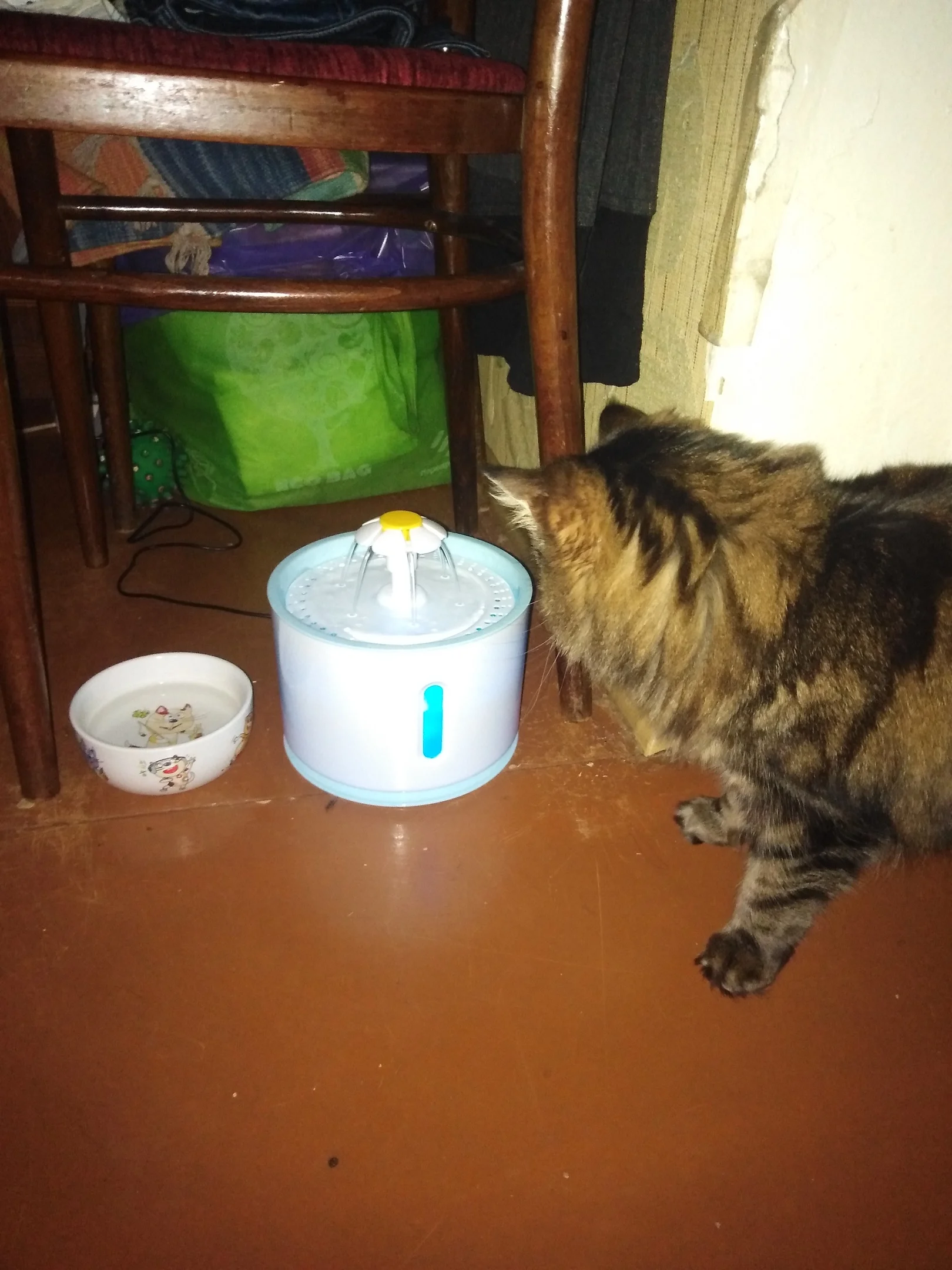 Все идеально. Работает хорошо. Мой кот немного страшен, но хорошо пьет из источника.