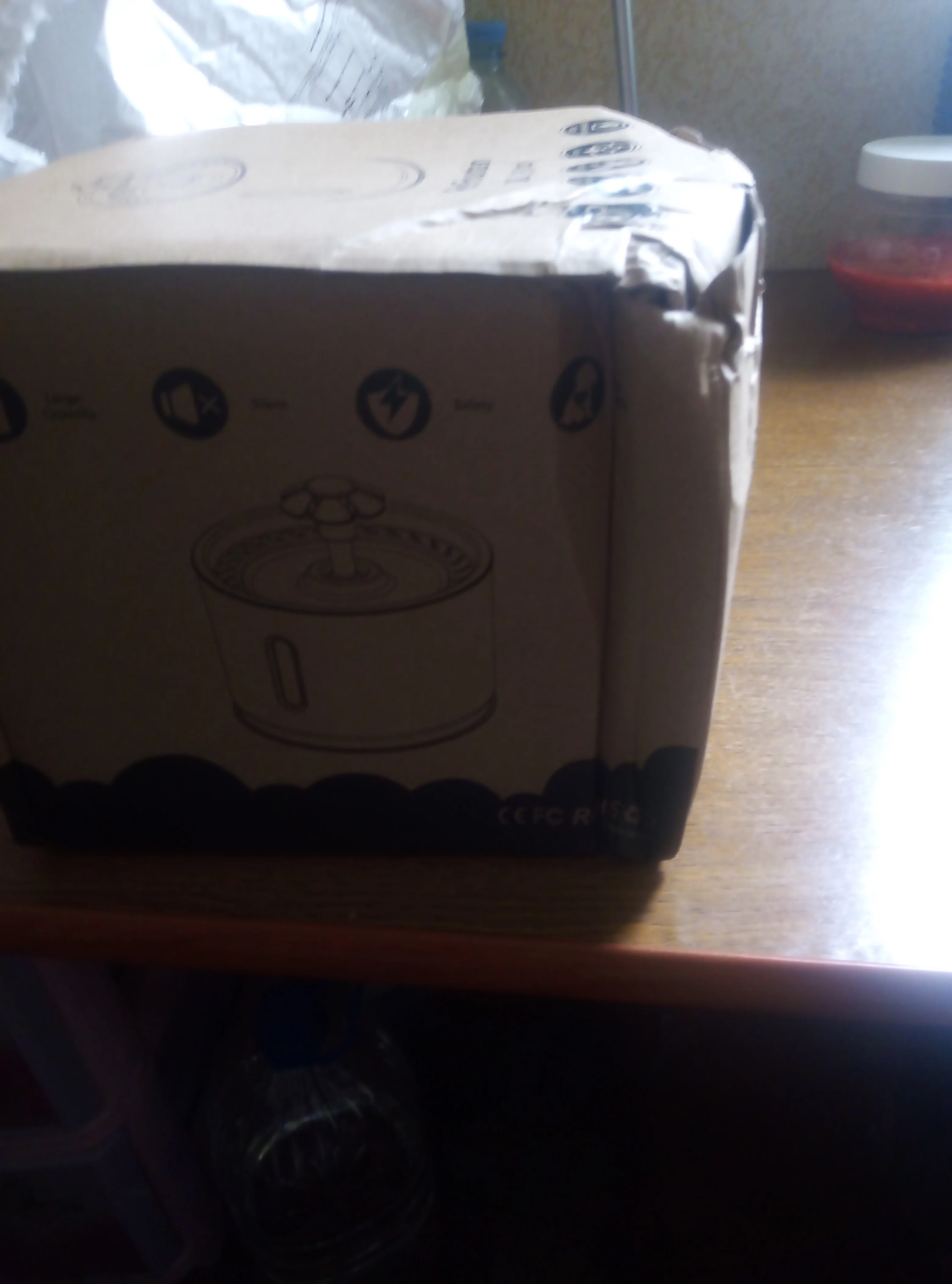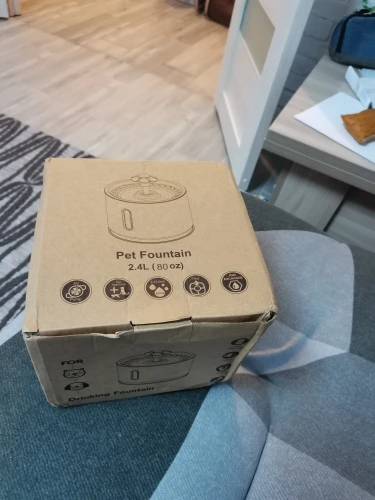 Посылка пришла очень быстро. Мне фонтан понравился. Был очень аккуратно упакован. Выглядит аккуратно, работает. Правда, кот пока не проявляет интерес. Может, из-за запаха после коробки. Надеюсь, скоро выветрится, и кот будет пить.