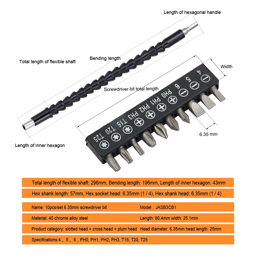 JelBo 295 мм гибкие биты вала удлинительная отвертка для ремонта автомобиля инструмент для электроники сверла направляющая Соединительный вал держатель