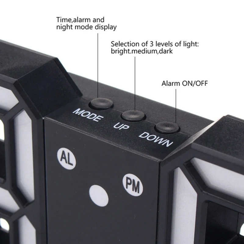 Материал: акрил + АБС Батарея: CR2032 (время памяти при отключении питания, не входит в комплект, часы питаются от USB кабеля) Размер: 24*9*4 см (больше, чем у других магазинов) Мощность питания: DC 5V 0,75 W Комплексные настройки: 1. Общие настройки: Нажмите и удерживайте кнопку "набор" кнопку, чтобы установить "12/24 часа в сутки» → «временной промежуток» → «год» → «Дата» → «℃/℉", "+" и "-" кнопки. (Нажмите кнопку «set», чтобы перейти к следующей настройке) 2. Настройка режима герметичности: Нажмите кнопку «+» → «L-SL» четыре уровня автоматической чувствительности в режиме сна; «L-AU» три уровня автоматической чувствительности; «L-01» первой яркости; «L-02» второй яркости; "L-03" третья яркость; Выключите дисплей. Такой цикл работы. 3. Настройка режима отображения: Нажмите кнопку «+» для переключения режима отображения: (1) только время отображения (2) Отображение времени, даты, температурного цикла Настройки сигнализации: 1. Нажмите кнопку "-", чтобы открыть/закрыть будильник 2. Нажмите кнопку "-", чтобы ввести настройки сигнализации 3. Начать Повтор: Когда звонит сигнал тревоги, нажмите любую клавишу, чтобы начать повтор, Световой индикатор тревоги медленно мигает 4. Выключите будильник: Когда будильник звонит, удерживайте любую клавишу, чтобы выключить будильник, введите следующий сигнал тревоги Посылка включает в себя: 1 x светодиодный часы (без розничной коробки) 1 х USB кабель (2 м, адаптер не входит в комплект) 1 x Руководство пользователя (инструкция прилагается в конце описания товара) Примечание: Из-за световых эффектов, яркости монитора, настроек контрастности и т. д. могут быть некоторые незначительные различия в цвете изображения и фактического товара. Пожалуйста, учитывайте разницу в 1-2 мм из-за ручного измерения, спасибо. Теплые советы: Если у вас есть какие-либо вопросы, пожалуйста, не открывайте спор, не связавшись с нами. Мы можем помочь вам решить любую проблему, чтобы обслуживать вас хорошо.
