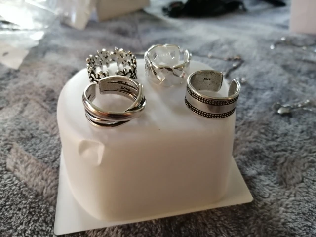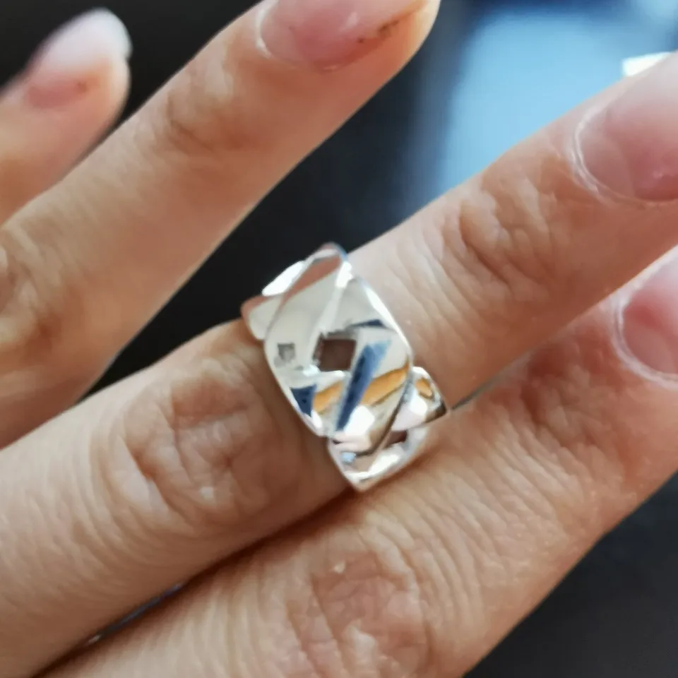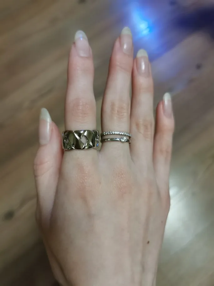 Размер кольца примерно 17. Не регулируется. Выглядит точно как на фото продавца. Есть проба S925 типа стерлинговое серебро. Не могу утверждать оно это или нет. За эту цену, очень стильное дополнение к образам . Доставка около месяца до Хабаровска. В телеграм канале Sveta_Kola можно найти обзоры на вещи и бижутерию с али)