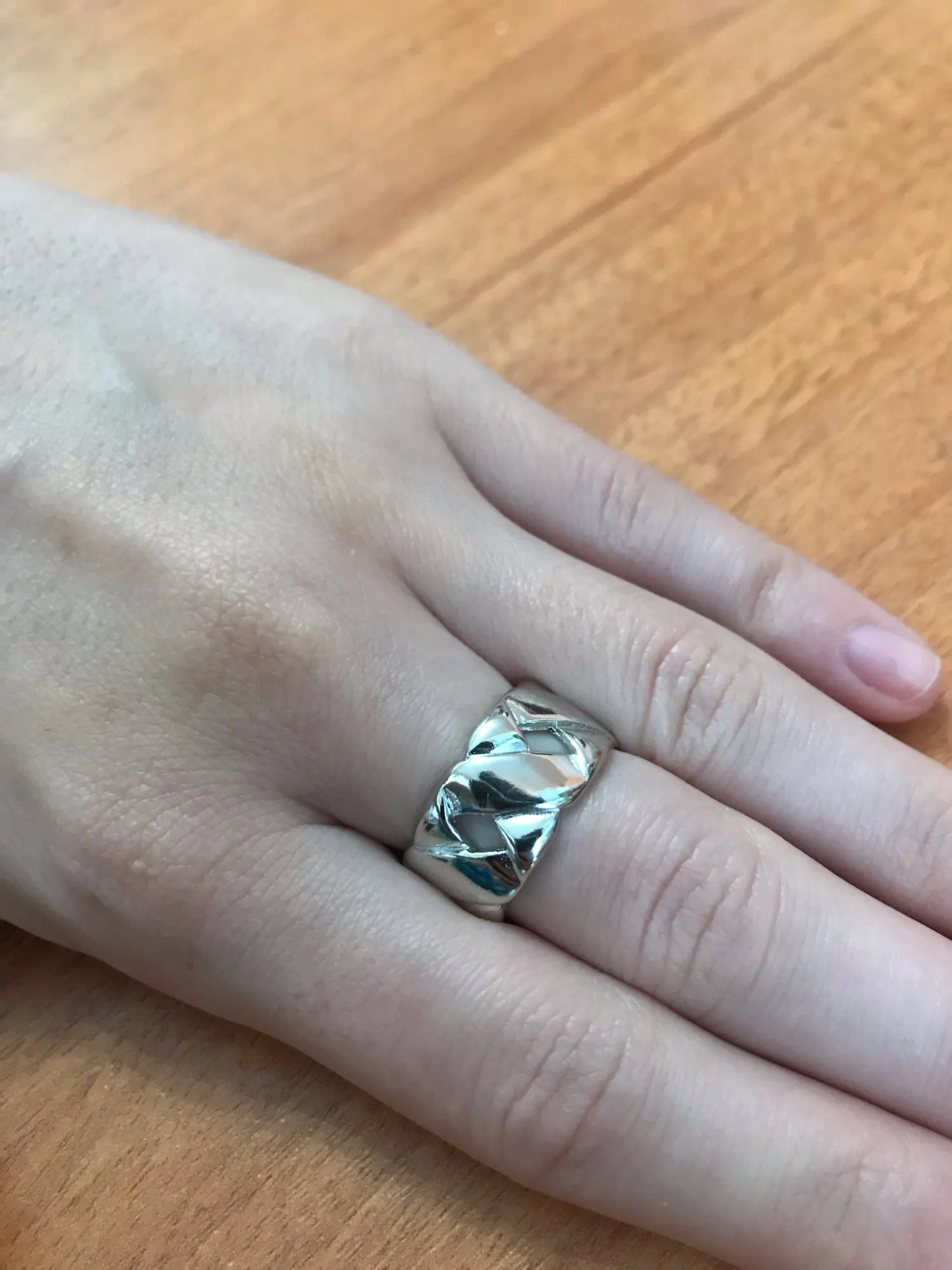 Смотрится красиво. Пришло быстро недели 2-3. Но кольцо не безразмерное, сделать больше ну никак не получится.