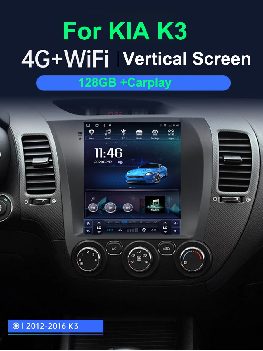 Магнитола Tesla с вертикальным экраном, мультимедийный проигрыватель на платформе Android 10,0 с Gps ДЛЯ KIA K3, Cerato, Forte 2013, автомобильная навигация, стерео