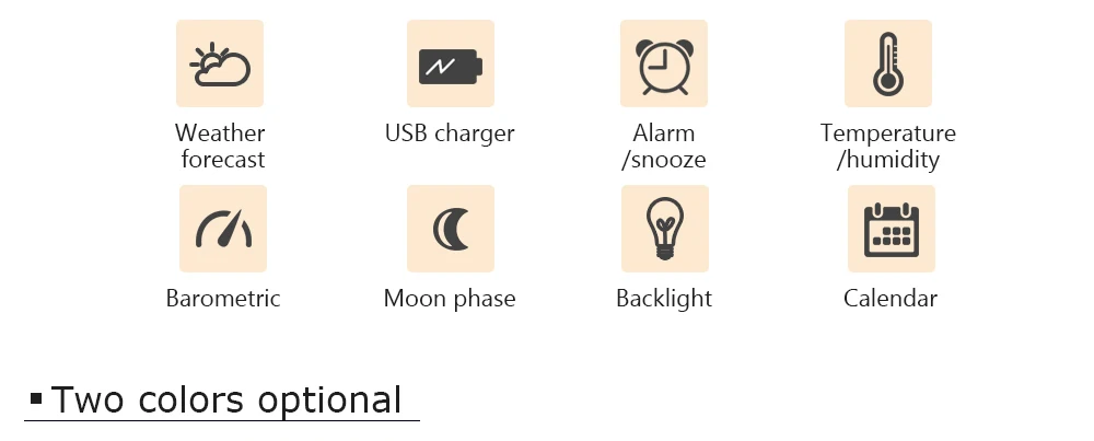 Прогноз погоды: Погодная станция использует встроенный датчик давления воздуха для прогноза погодных условий в течение следующих 8 часов. Текущий экран не отображает погоду в реальном времени. Мы рекомендуем использовать местные профессиональные прогноза погоды в качестве точной информации.