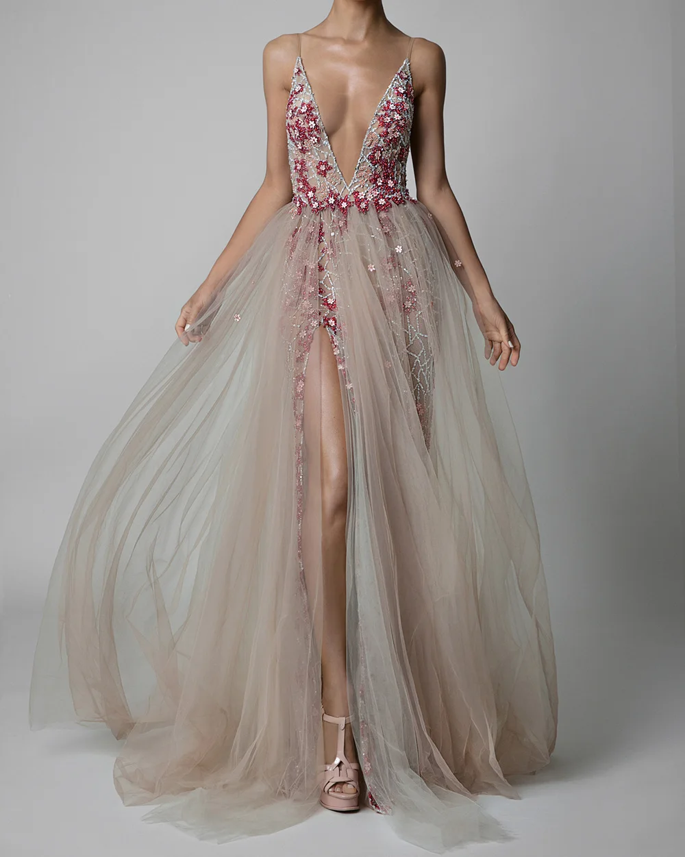 Женское вечернее платье SSYFashion, роскошное платье с глубоким V-образным вырезом и открытой спиной, длинное пляжное платье с блестками и бисером