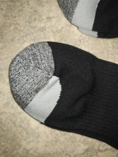 С виду выглядят хорошо, но на носке там где мне кажется не очень качественный шов. Посмотрим как будут носится. Пятка как и носок без усиленного к износу материала, выполнены из такого же материала только нить чуть потолще и другого цвета.