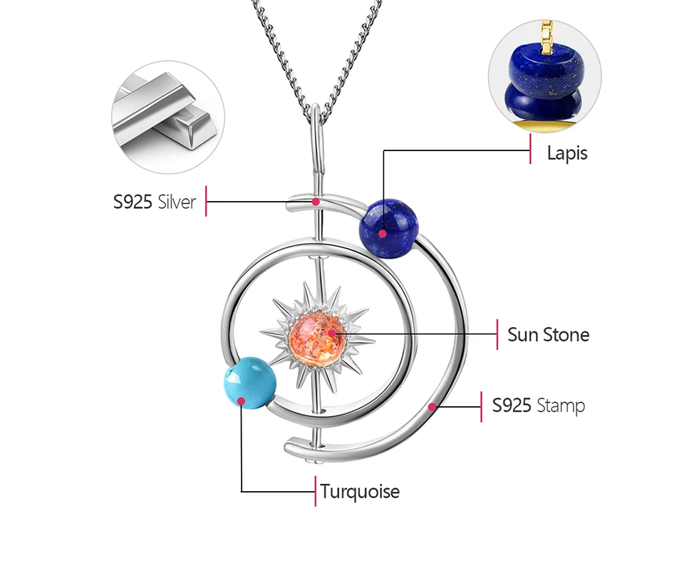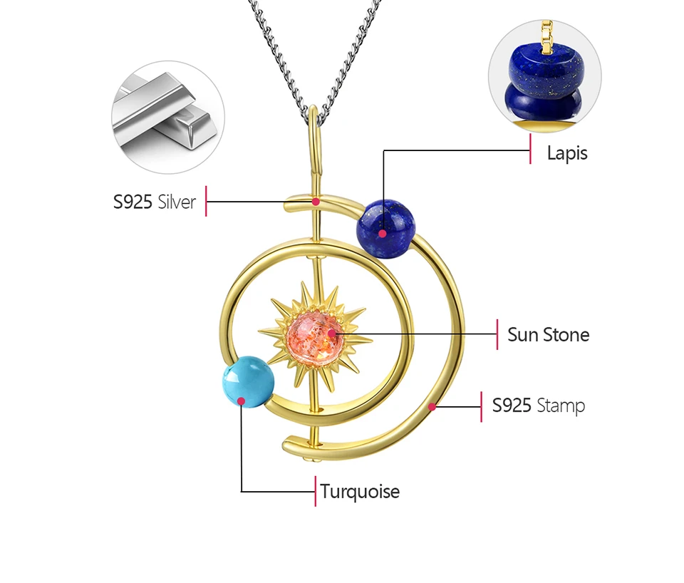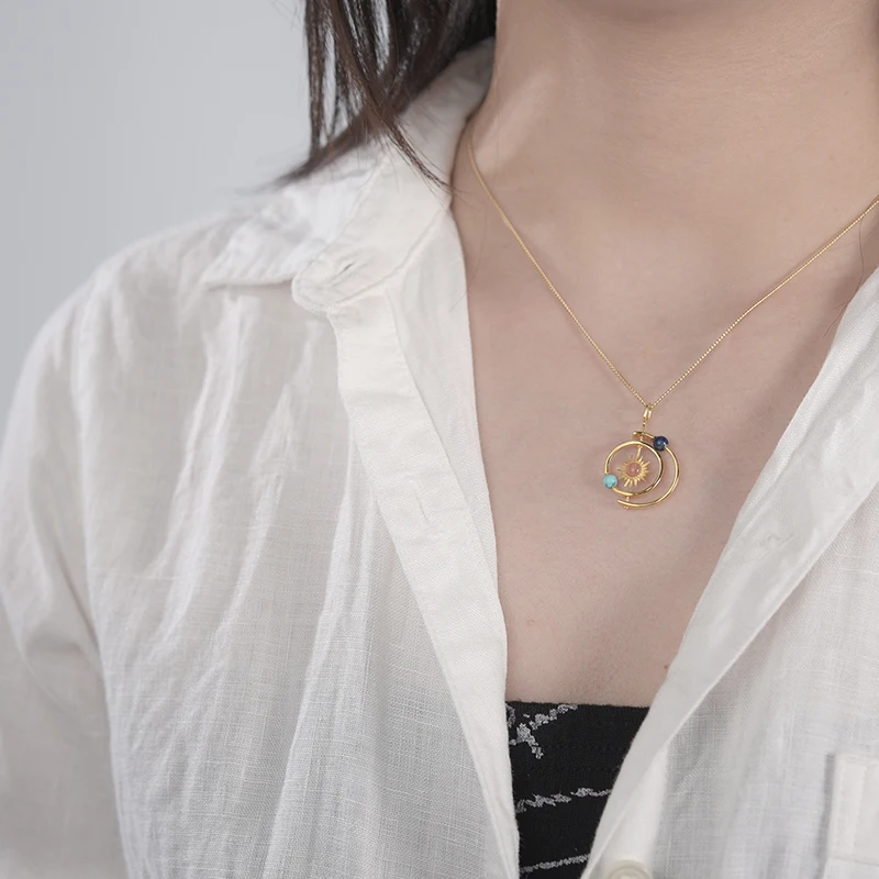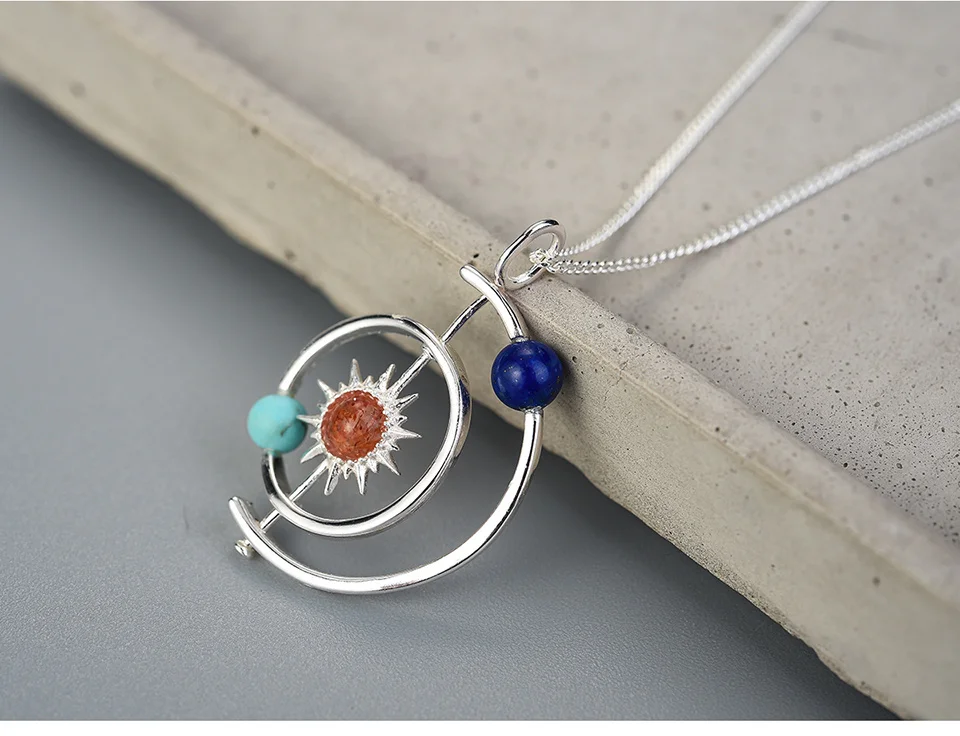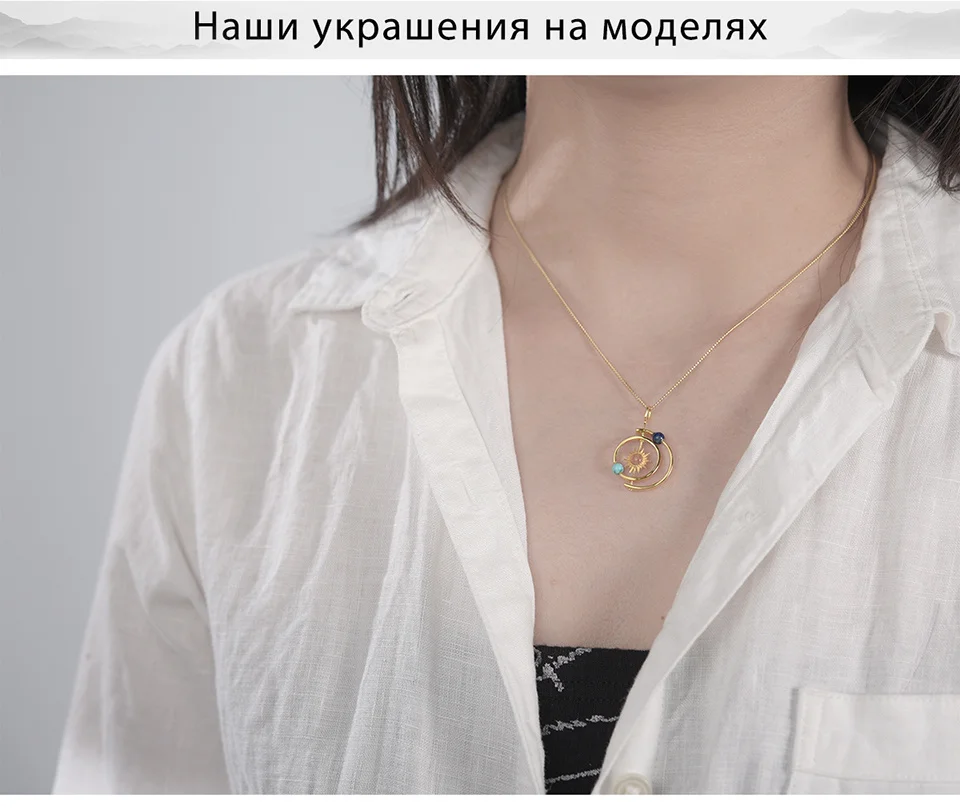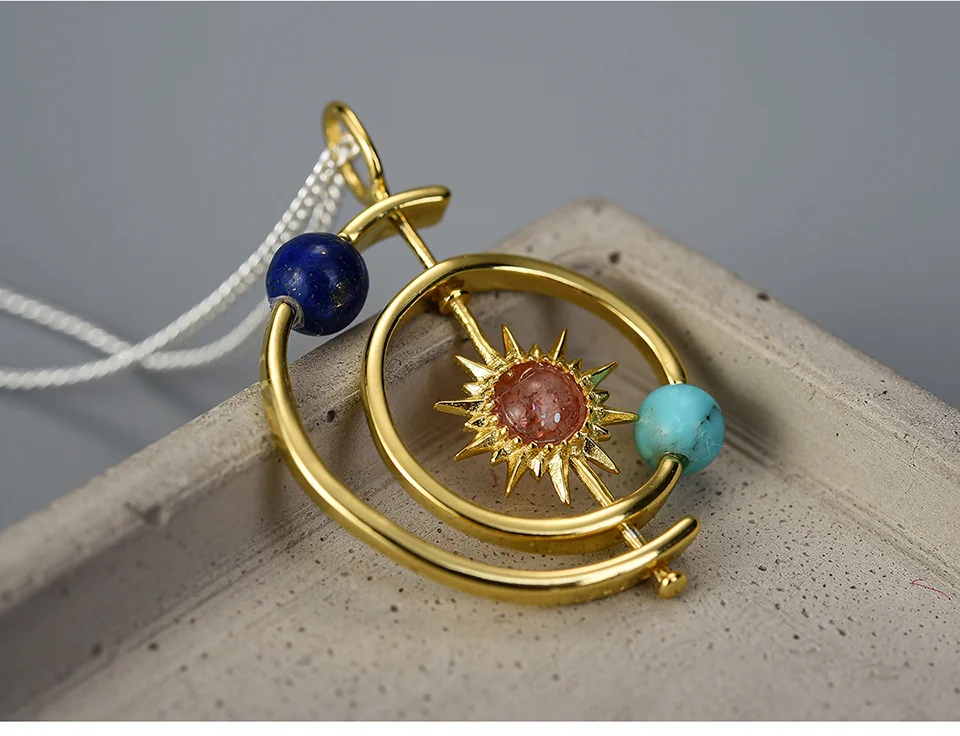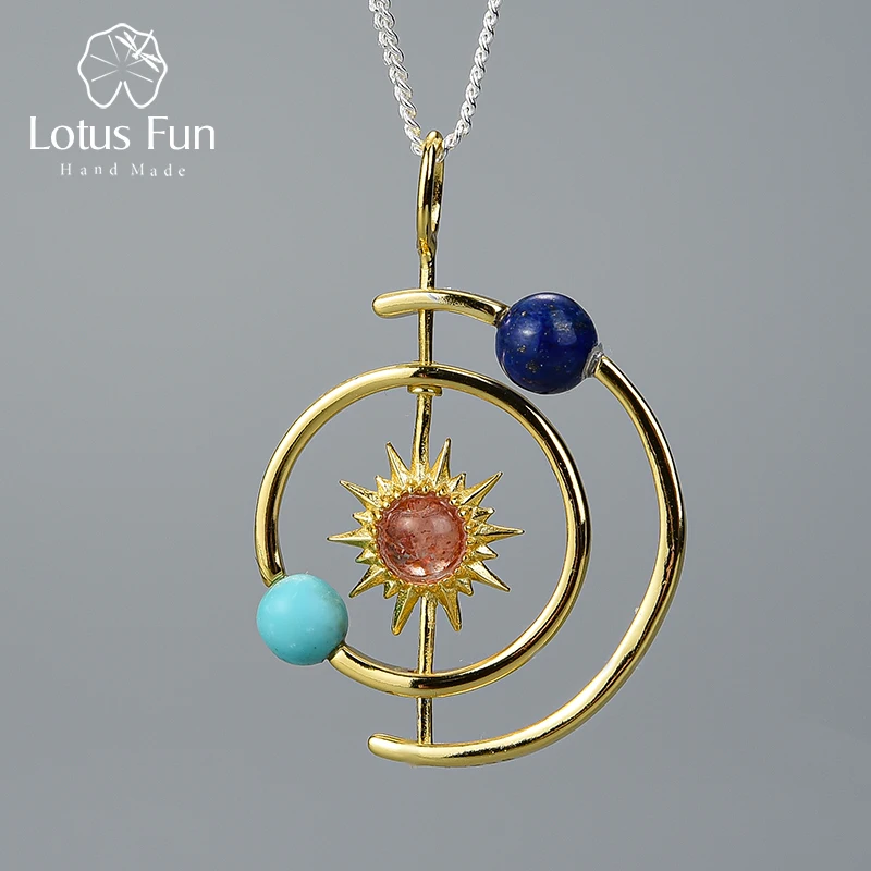 Женский кулон солнечная система Lotus Fun, изящный кулон без цепочки ручного изготовления из настоящего серебра 925 пробы с золотом 18 карат, подарок