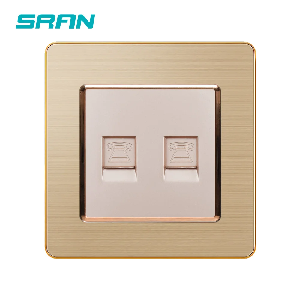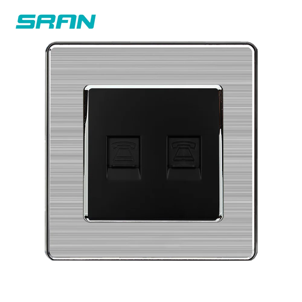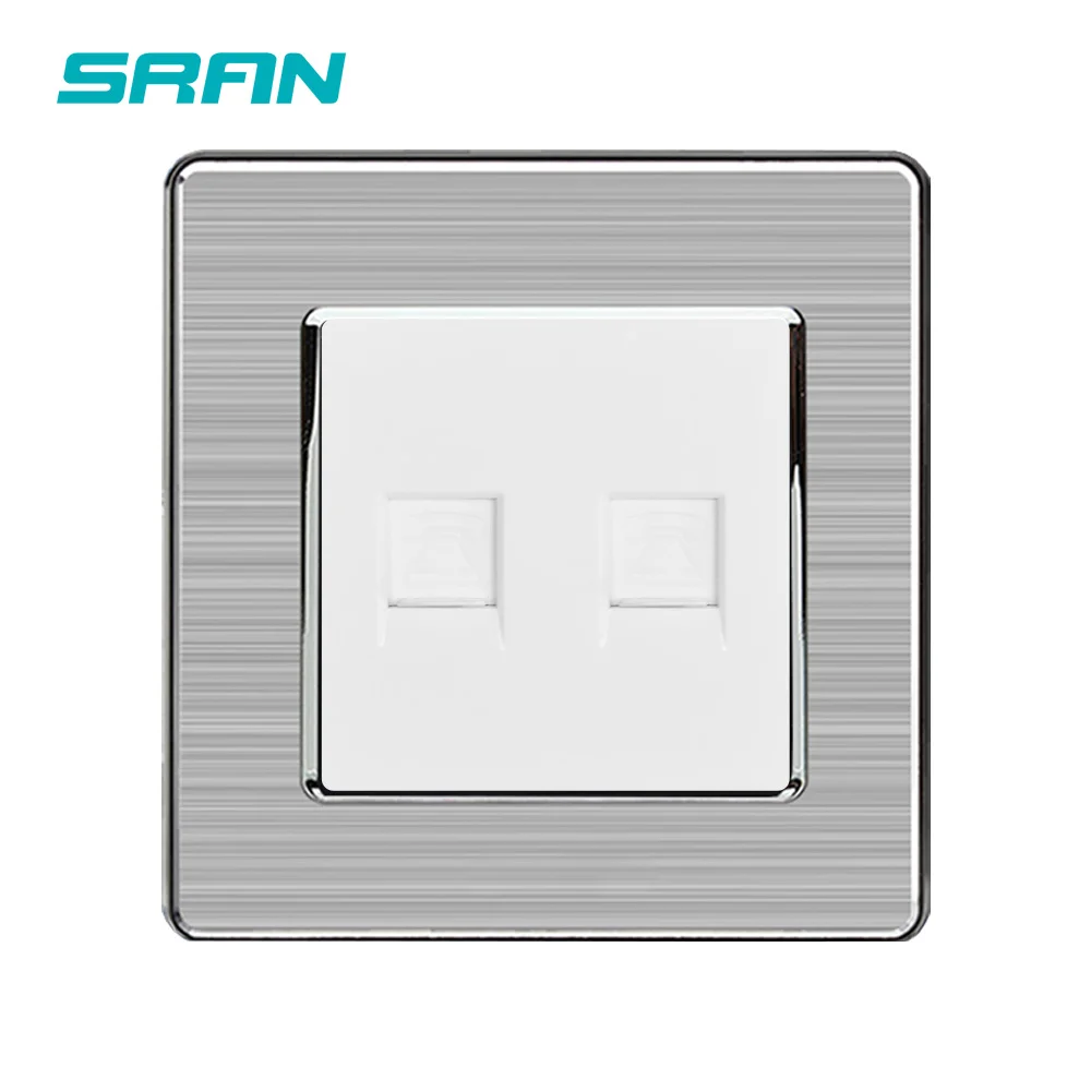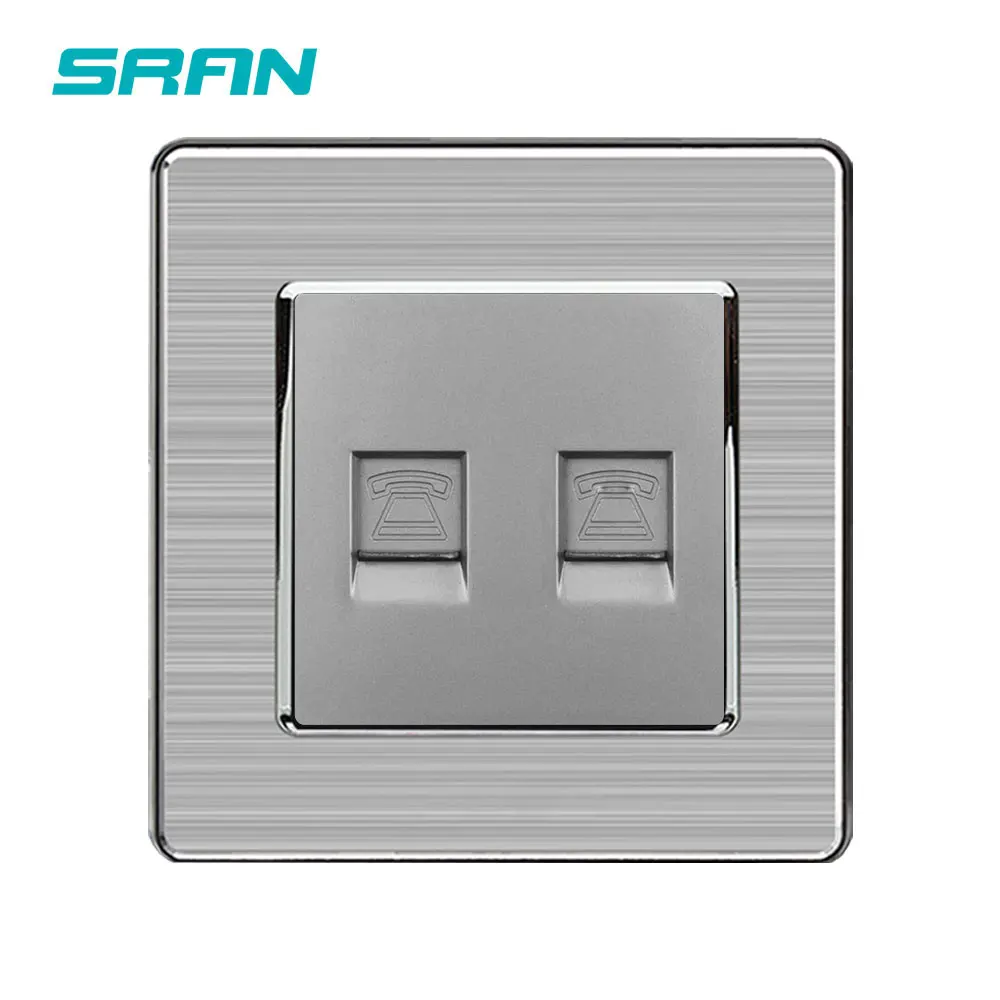 Настенная розетка SRAN с двойным телефоном, разъем электрического типа 86*86 мм, аксессуары для украшения дома, панель из нержавеющей стали для телефона