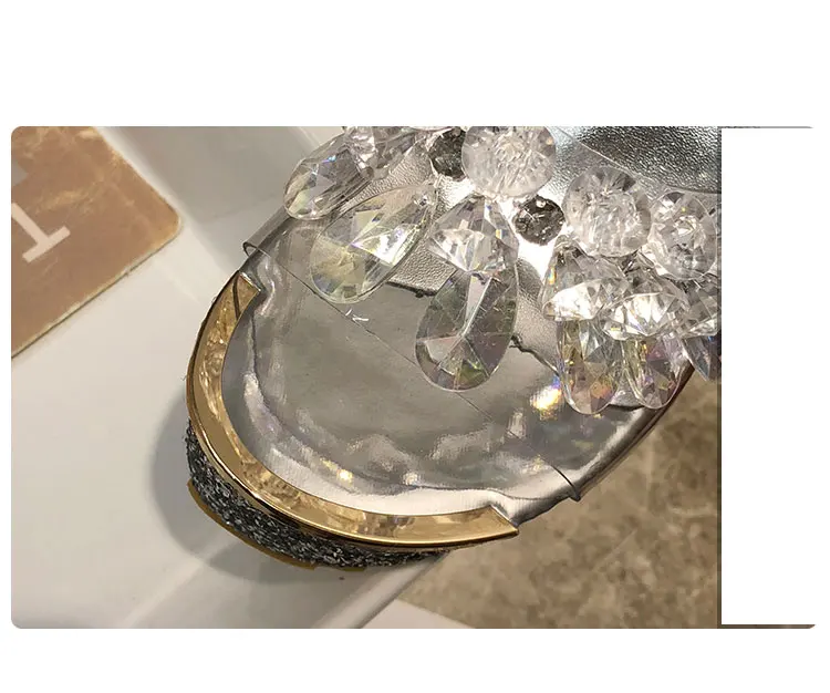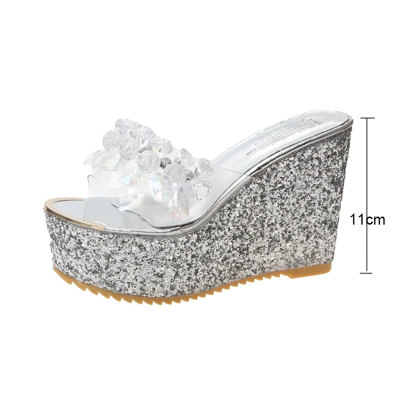 Прозрачные шлепанцы с кристаллами, женские летние сандалии, женские шлепанцы на платформе и высоком каблуке, шлепанцы на танкетке с открытым носком, женские золотые