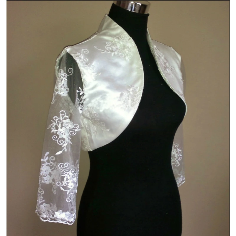 Свадебное болеро из атласа и кружева цвета слоновой кости или белого цвета, болеро, жакет, палантин, накидка, свадебное пальто с длинными рукавами 34