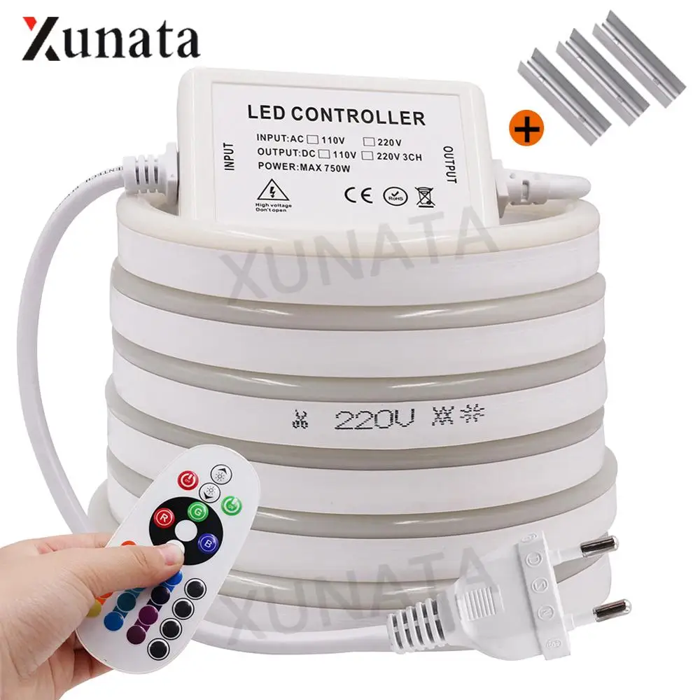 220 В светодиодный неоновый свет гибкий RGB светодиодный неоновый знак водонепроницаемый Wi-Fi светодиодный неоновый скотч с вилкой европейского стандарта светодиодный светсветильник льник для украшения дома