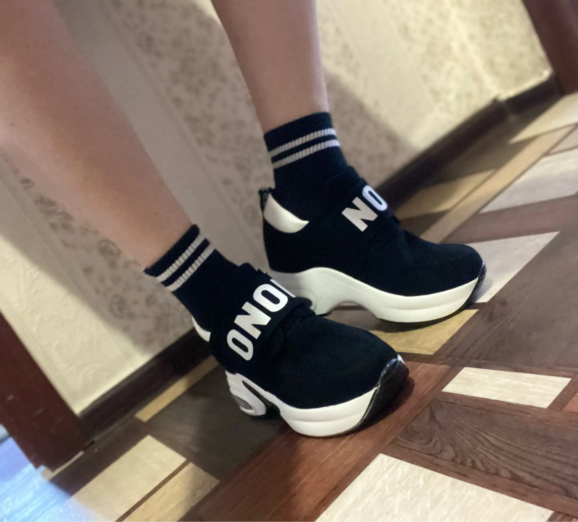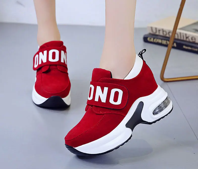 Женские кроссовки на платформе, черные, красные, повседневные кроссовки