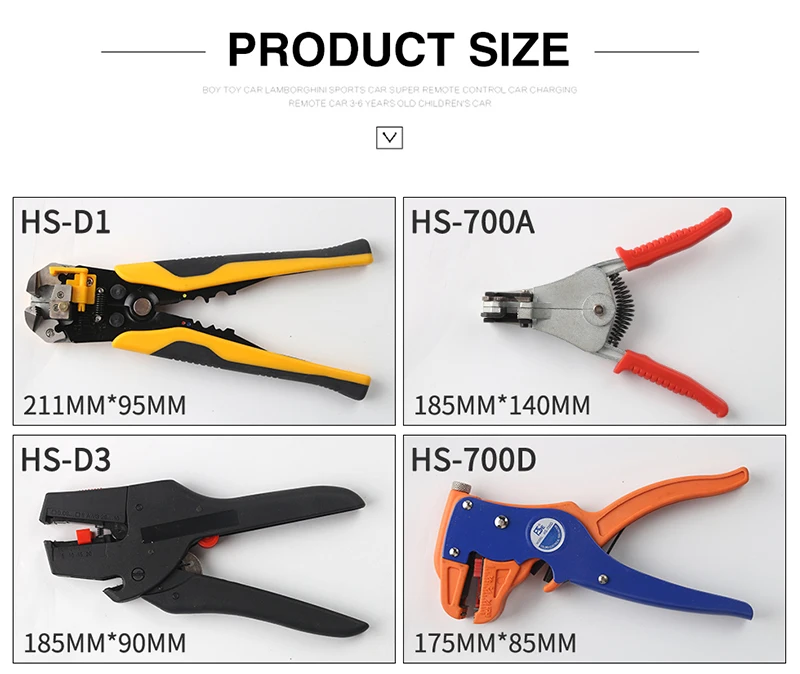 HS-D1: Емкость зачистки 0,25-6 мм2/резка 0,25-6 мм2/обжимной терминал 0.5-6 мм2/длина 205 мм/вес 300 гHS-D2: объем шнура 0,2-6,0 мм 2/AWG24-10/вес 300 гHS-700B: Емкость зачистки 0.5-6мм2/длина 175 мм/вес 360 гHS-700D: зачистки диапазон: 0.5-6mm2/емкость для обжима 0,5-6mm2FS-D3: объем зачистки 0,08-2,5 мм 2/длина 190 мм/вес 150 г