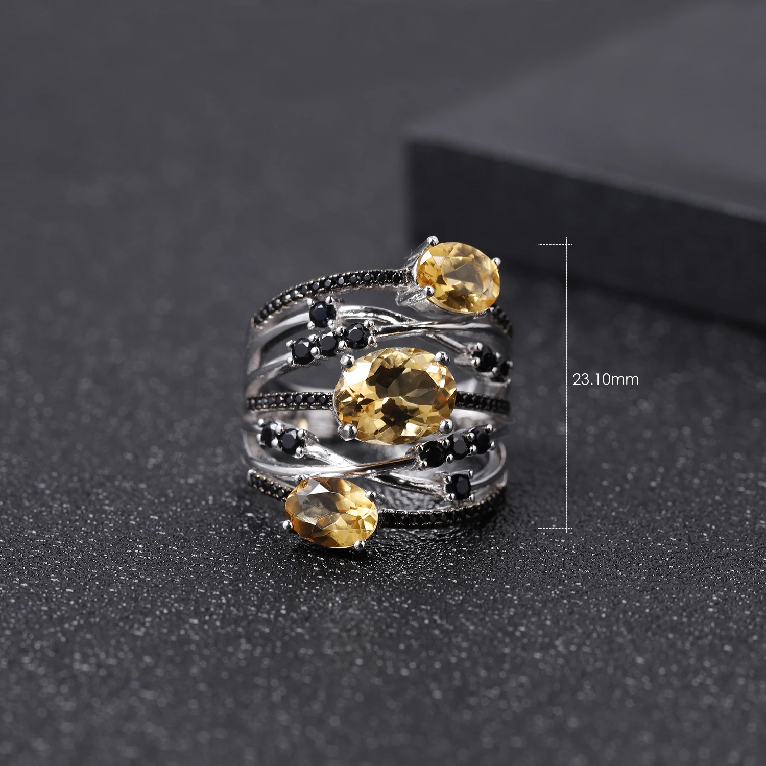 Кольцо с натуральным цитрином 3,42 карата, серебряное кольцо с тремя камнями