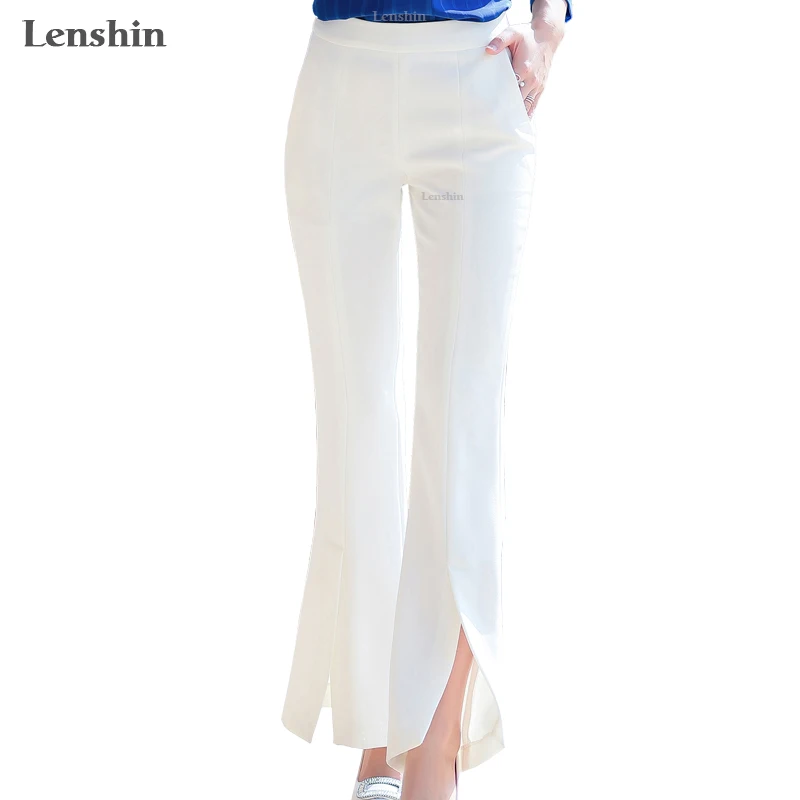 Женские расклешенные брюки Lenshin, облегающие брюки с карманами, летняя рабочая одежда, полная длина, офисная одежда для женщин