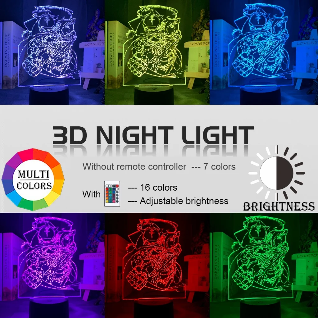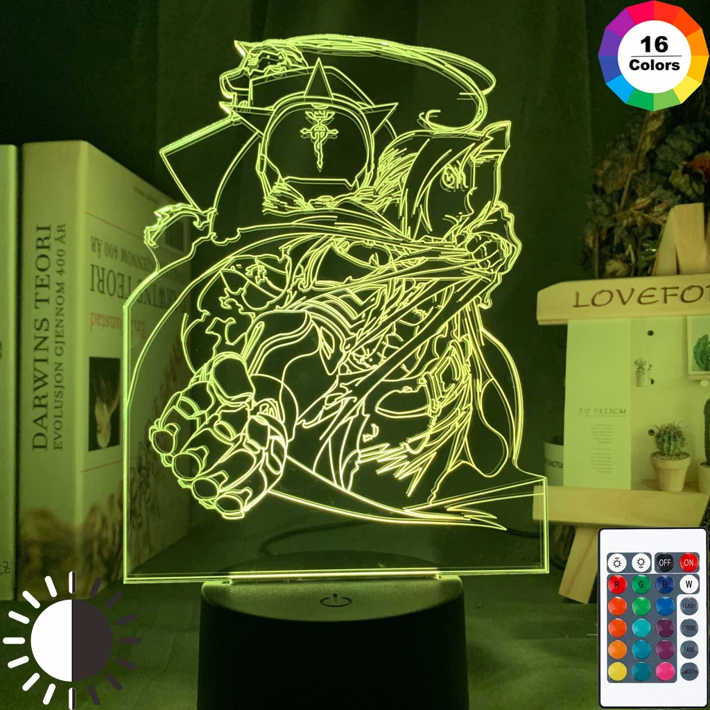 Манга Стальной алхимик Эдвард Элрик фигурка ночсветильник светодиодный меняющий цвет детская спальня декоративный светильник Usb Настольная 3d лампа