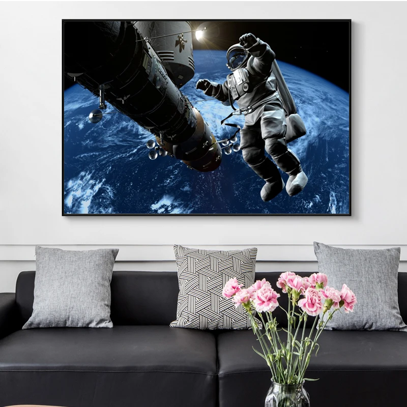 Настенное украшение, постер с изображением космоса, Картина на холсте, космос, космонавты, работа в космосе, картина, Декор для дома