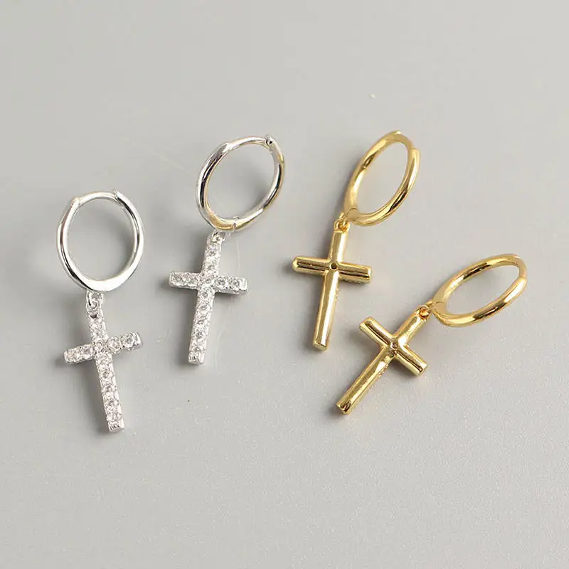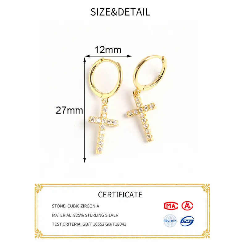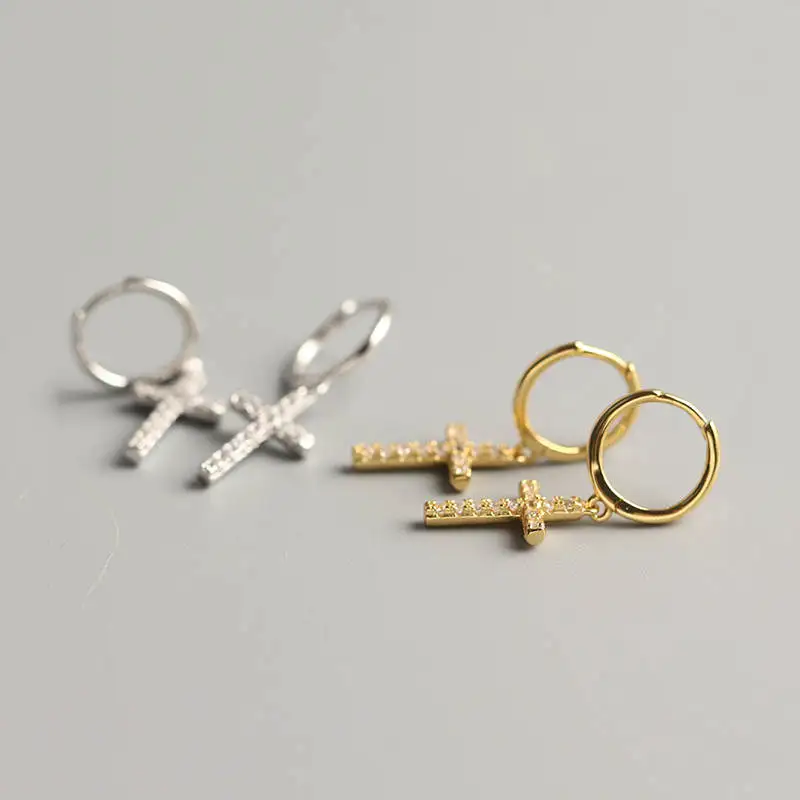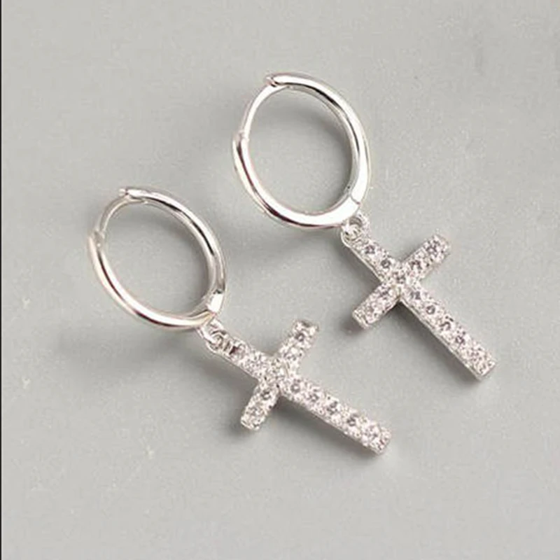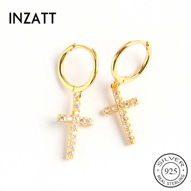 INZATT, Настоящее серебро 925 пробы, геометрические циркониевые серьги-кольца с крестиком, модные женские вечерние Изящные ювелирные изделия, аксессуары
